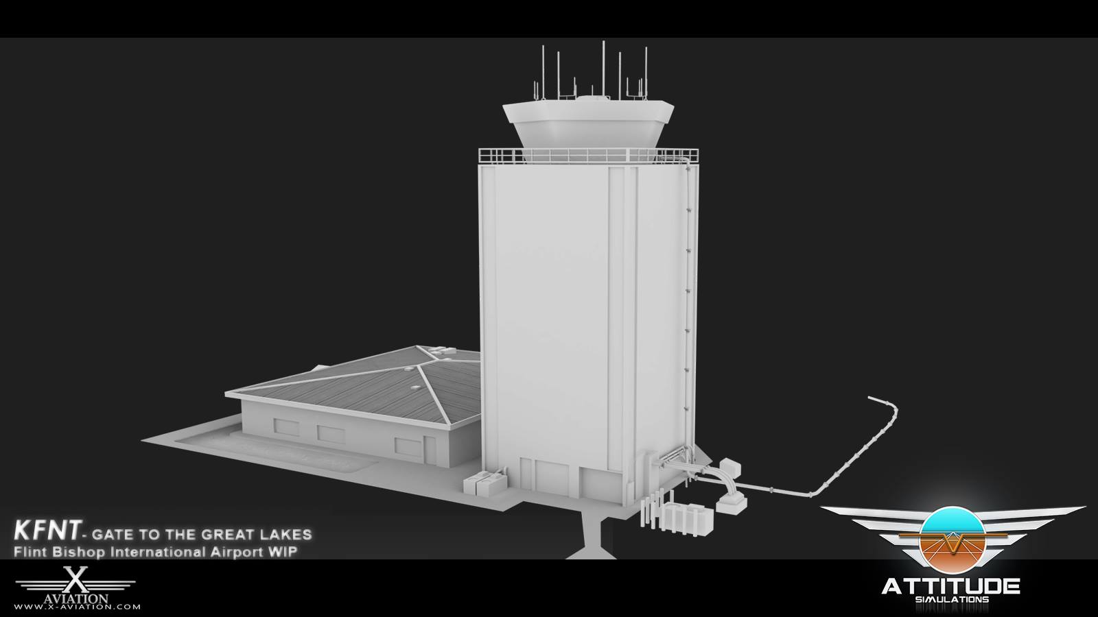 KFNT Bishop International Airport is a commercial and general aviation airport located in Flint, Michigan. This airport will be another entry in the “Gateway to the Great Lakes” series and is currently in an early stage of development. James Brown, lead developer of KFNT, has dropped some renders of the control tower at Bishop Int’l.