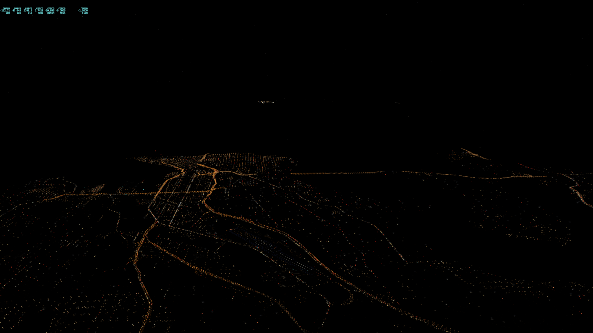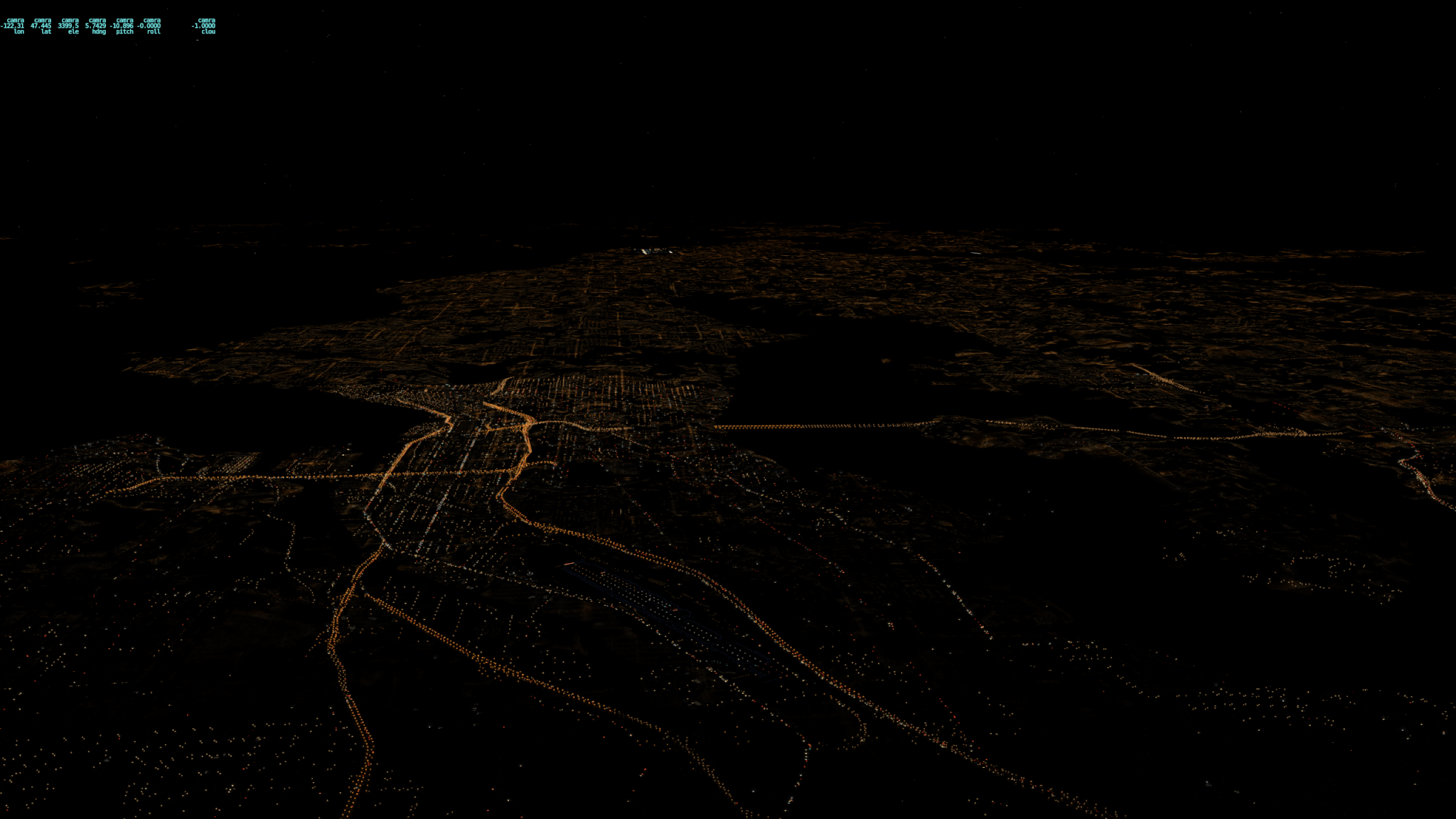 X-Plane’s night lighting stems from the autogen, however, X-Plane doesn’t build autogen far from the aircraft for performance reasons. New night lighting textures for distant views is added to fill in the night sky. See here for comparison shots: