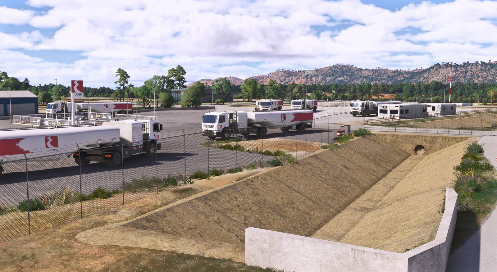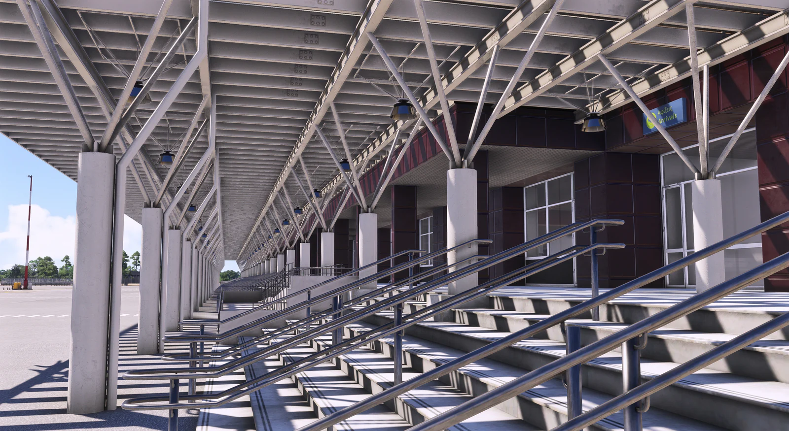 The scenery features an accurate rendition of the airport, with custom ground textures, highly detailed 3d objects, terminal interiors, sloped runway profile, custom animated wingsocks, and much more.