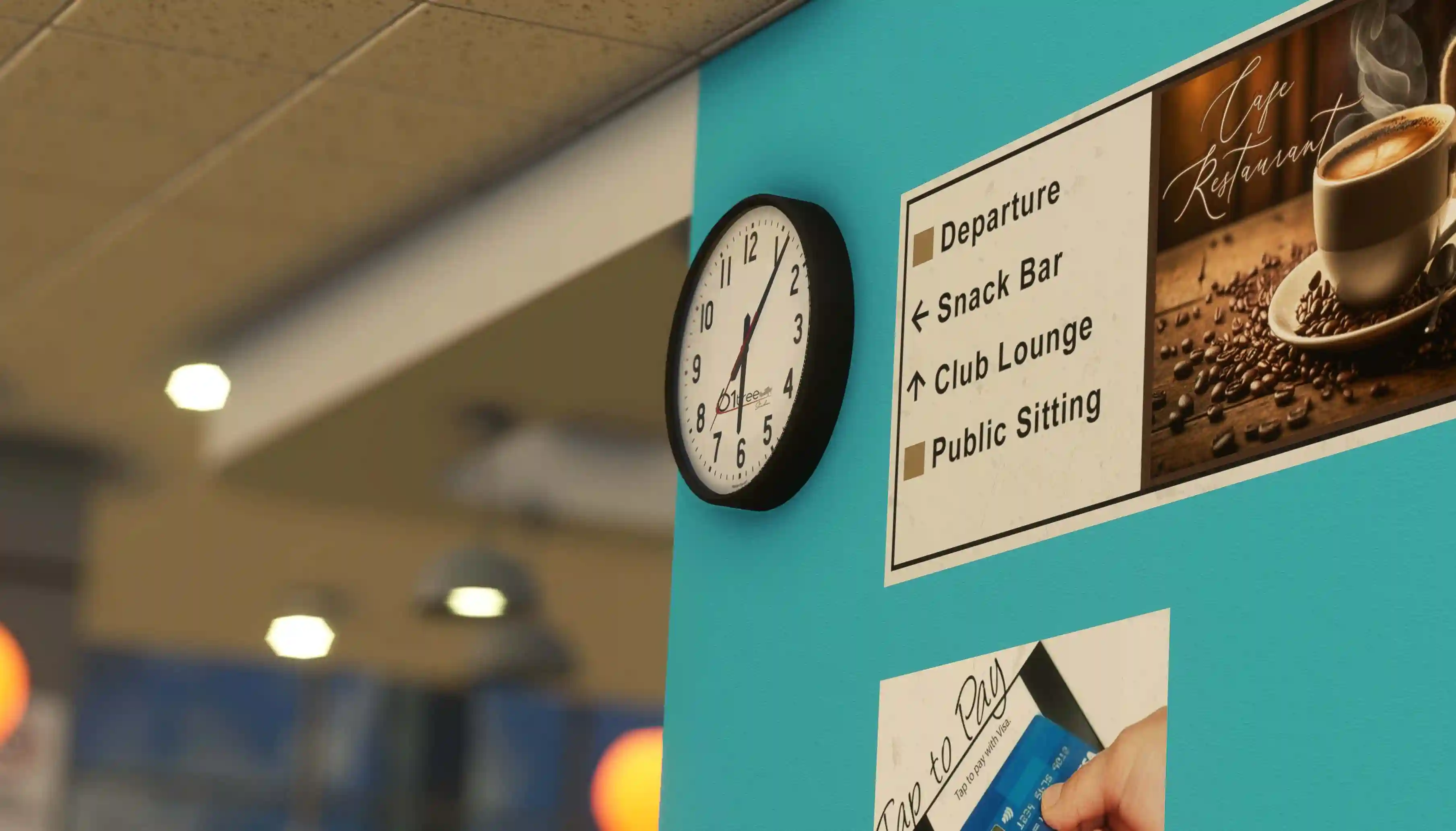 The scenery features an accurate rendition of the airport, with custom ground textures, a terminal interior, an up-to-date ground layout, custom landside buildings, and more.