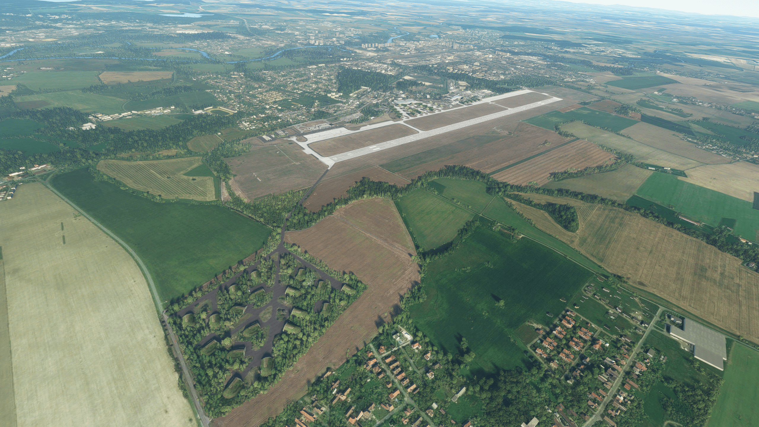 The scenery features an accurate rendition of Pardubice Airport, with orthoimagery around the whole area, optimized dynamic lighting, and performance friendly optimization.