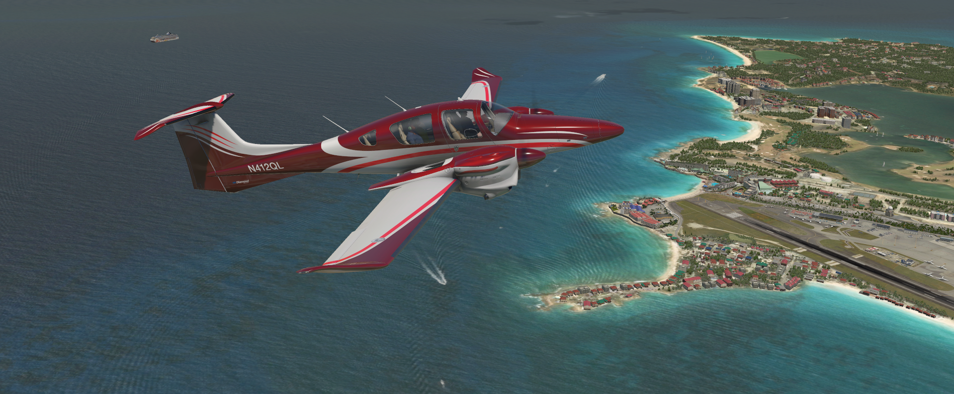 From the luxurious leather seats to the sleek metallic fuselage, Aerobask has nailed the visuals of the DA62, inside and out. Beginning with the 3D modelling and texture work of the aircraft, I observed that the interior has been modeled to the highest expectable standard, thus, scoring five out of five possible points. The texture work and level of detail is, all-around, superb. Highlights include: