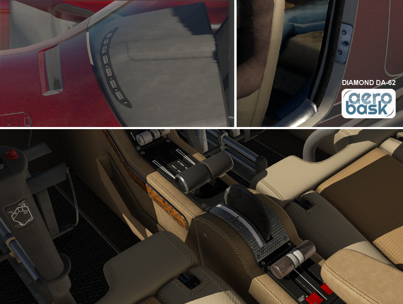 Aerobask has released a set of new images for their upcoming Diamond-DA62, all of which looks incredible. The Diamond DA62 is a five to seven seat, twin-engined light aircraft produced by Diamond Aircraft Industries. The DA62 series is powered by the Austro Engine AE330. A turbocharged common-rail injected 2.0 liter jet fuel engine, with 180 HP and a EECU single lever control system. As confirmed by the developer on the support forum, a release can be expected around the Middle of March.