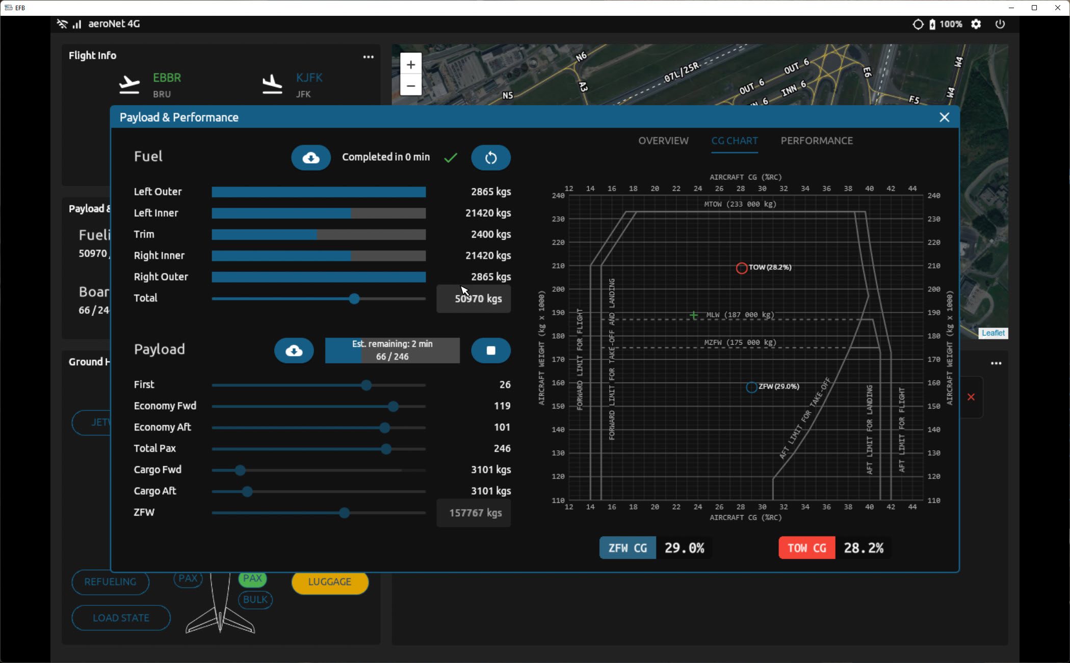 It’s then followed up by multiple previews of the electronic flight bag, showing the many pages of the loadsheet manager, the charts application, and the operational flight plan viewer: