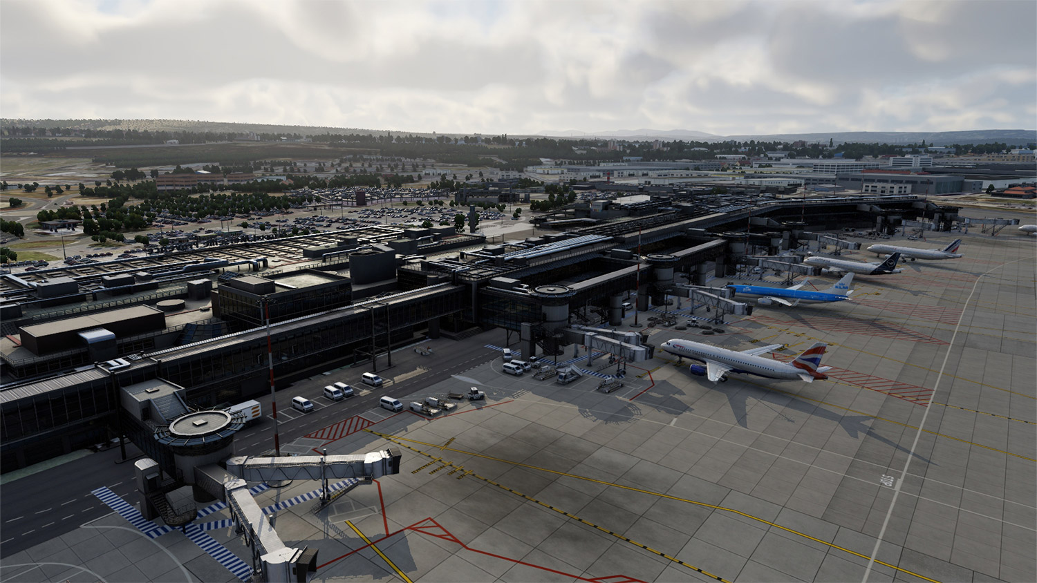 The scenery features an accurate rendition of the airport, with high-quality 3D objects, native weather effects, high-resolution orthophoto, realistic ground textures, accurate dynamic night lighting, performance-friendly optimization, SAM integration, custom animated jetways, and more.