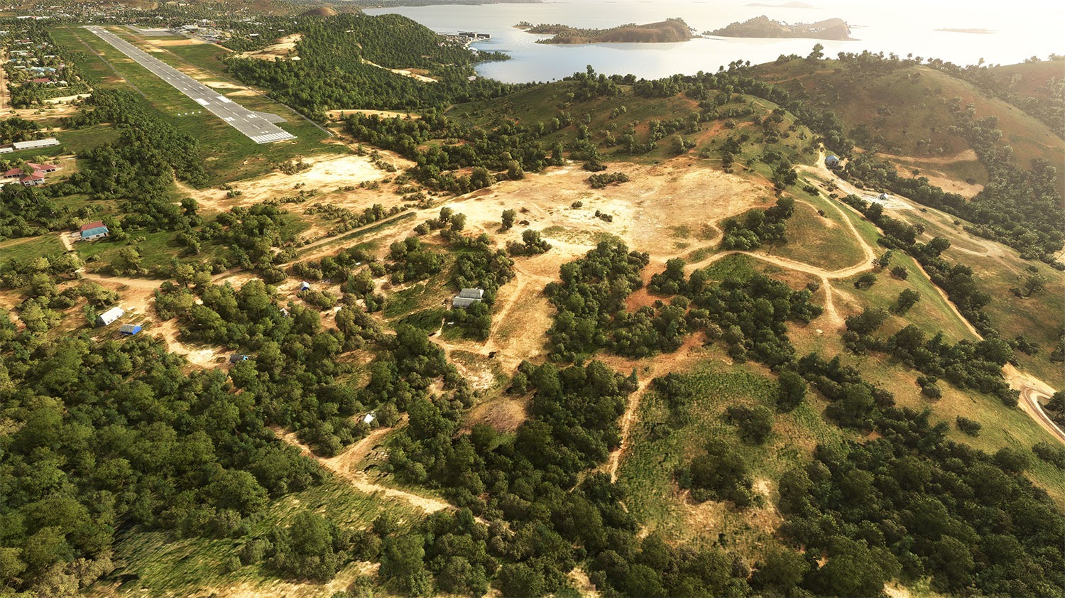 As with any Aerosoft scenery, the modeling and textures are really well-done, giving an eye-pleasing, realistic representation of the airport. Furthermore, the runway is located right in between the town of Labuan Bajo and the sea, don’t let this fool you as there is only a couple of meters between the runway threshold and buildings, so you’ll want to watch out for cows at the beginning of the runway. This, however, isn’t the only challenge. Because of the location of the runway, there are still plenty of objects for you to hit.