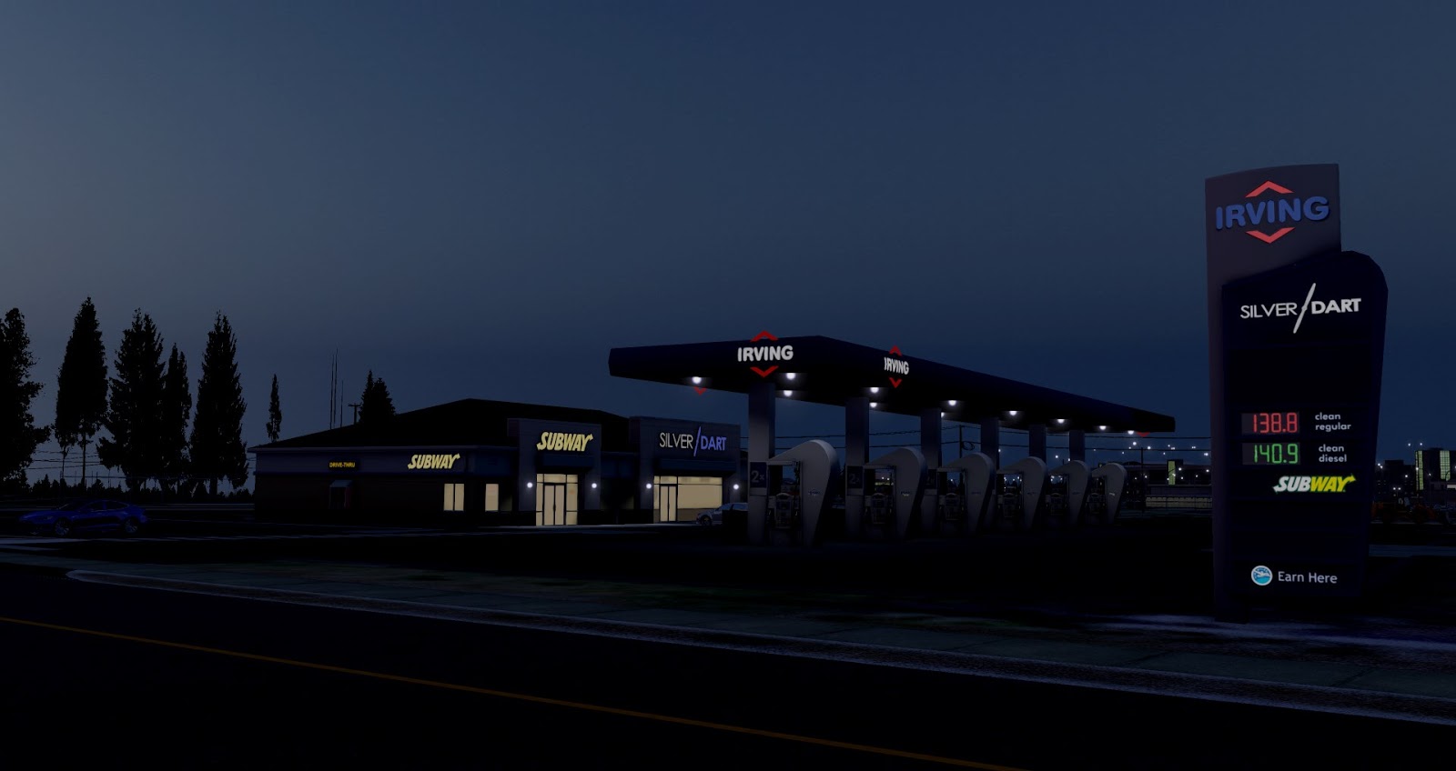 Numerous airport buildings ,as well as surroundings can be seen in these previews, such as a Subway, a fuel pump and a restaurant.