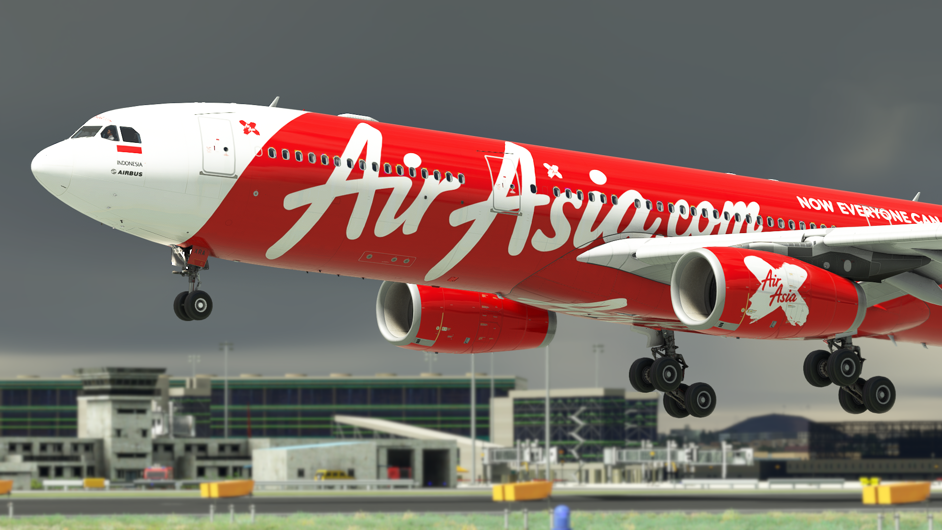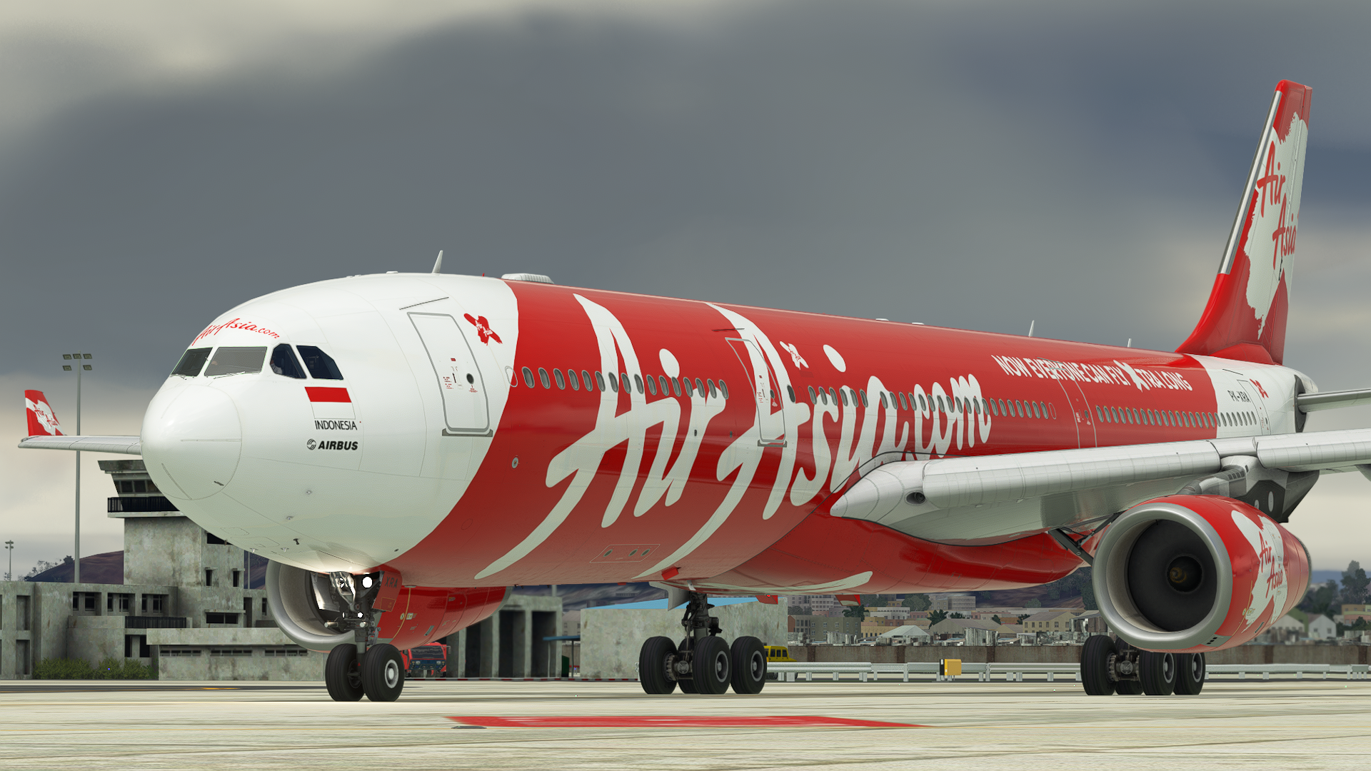 P. Astarto, presumably one of their beta testers, shared two screenshots of a community-made AirAsia livery on taxi and take-off:
