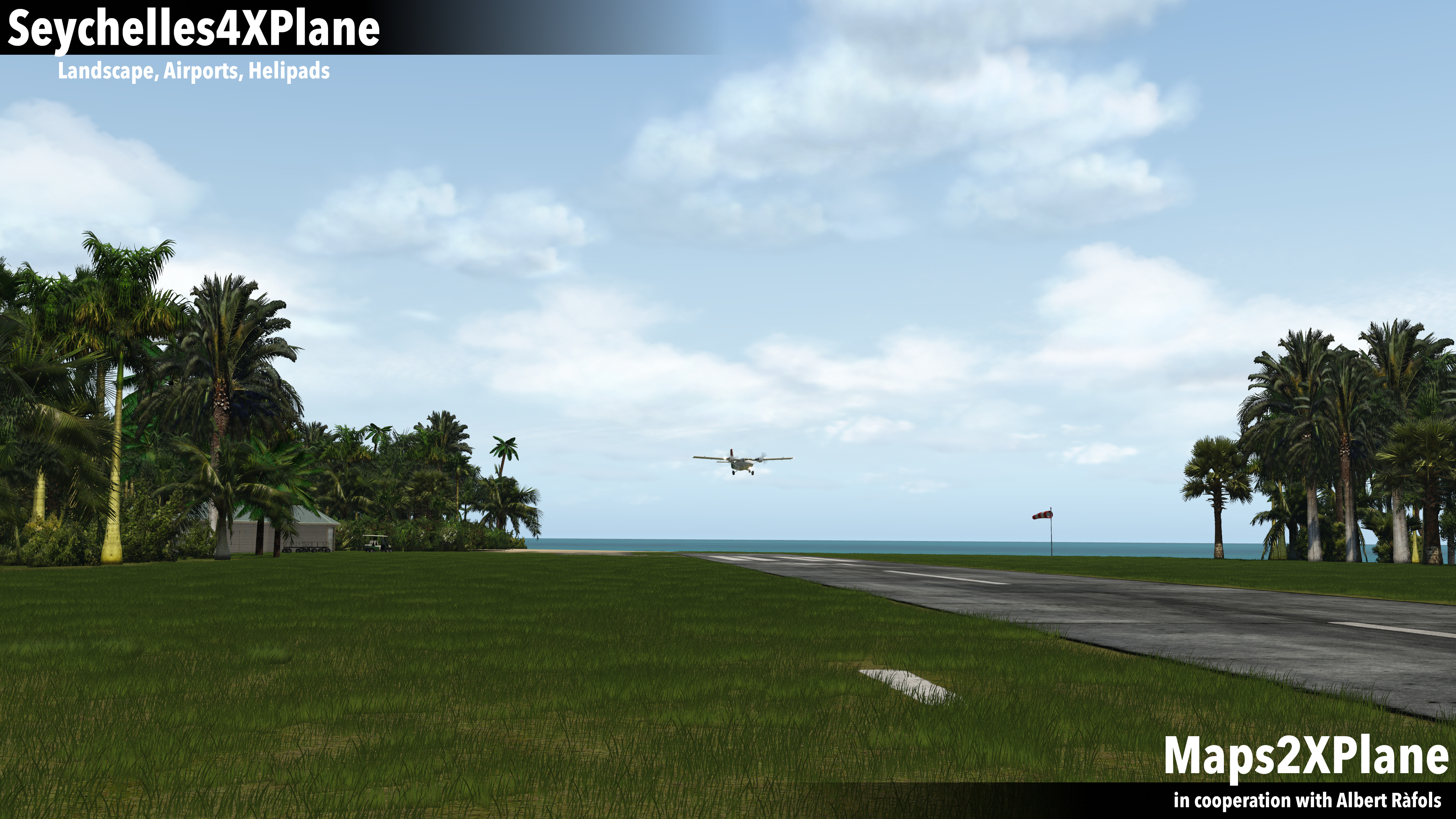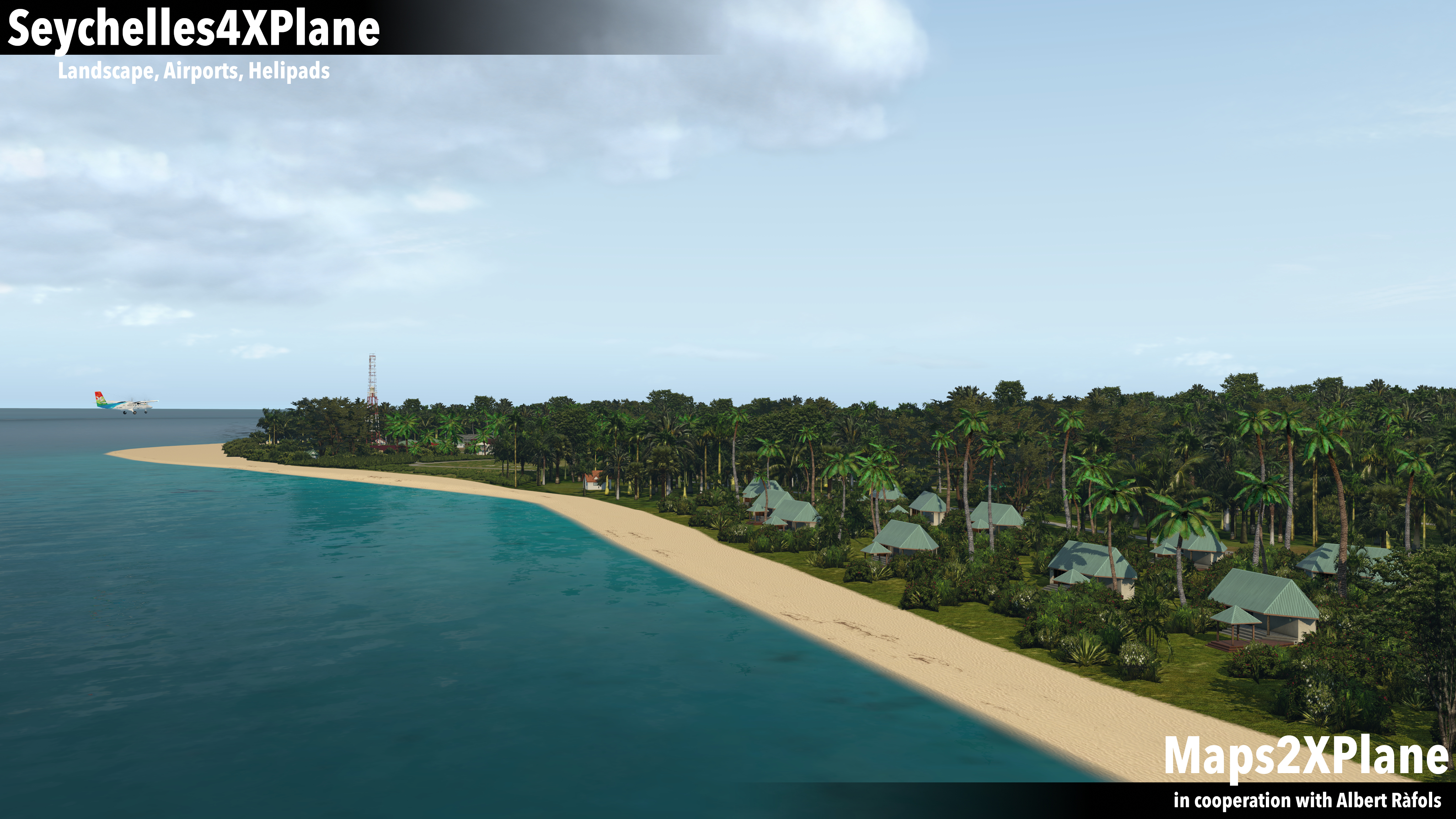“Expect untouched nature, stunning atolls and lagoons, dense tropical vegetation, and here and there a few signs of civilization. That means for our Seychelles rendition for X-Plane: photorealistic terrain mesh paired with custom 3D vegetation, custom generic autogen, and custom dynamic traffic on land and on the sea. Last but not least: Selected islands, hosting IRL hotels and resorts, received also some extras: We populate them with custom objects and buildings, based on real counter-parts.”