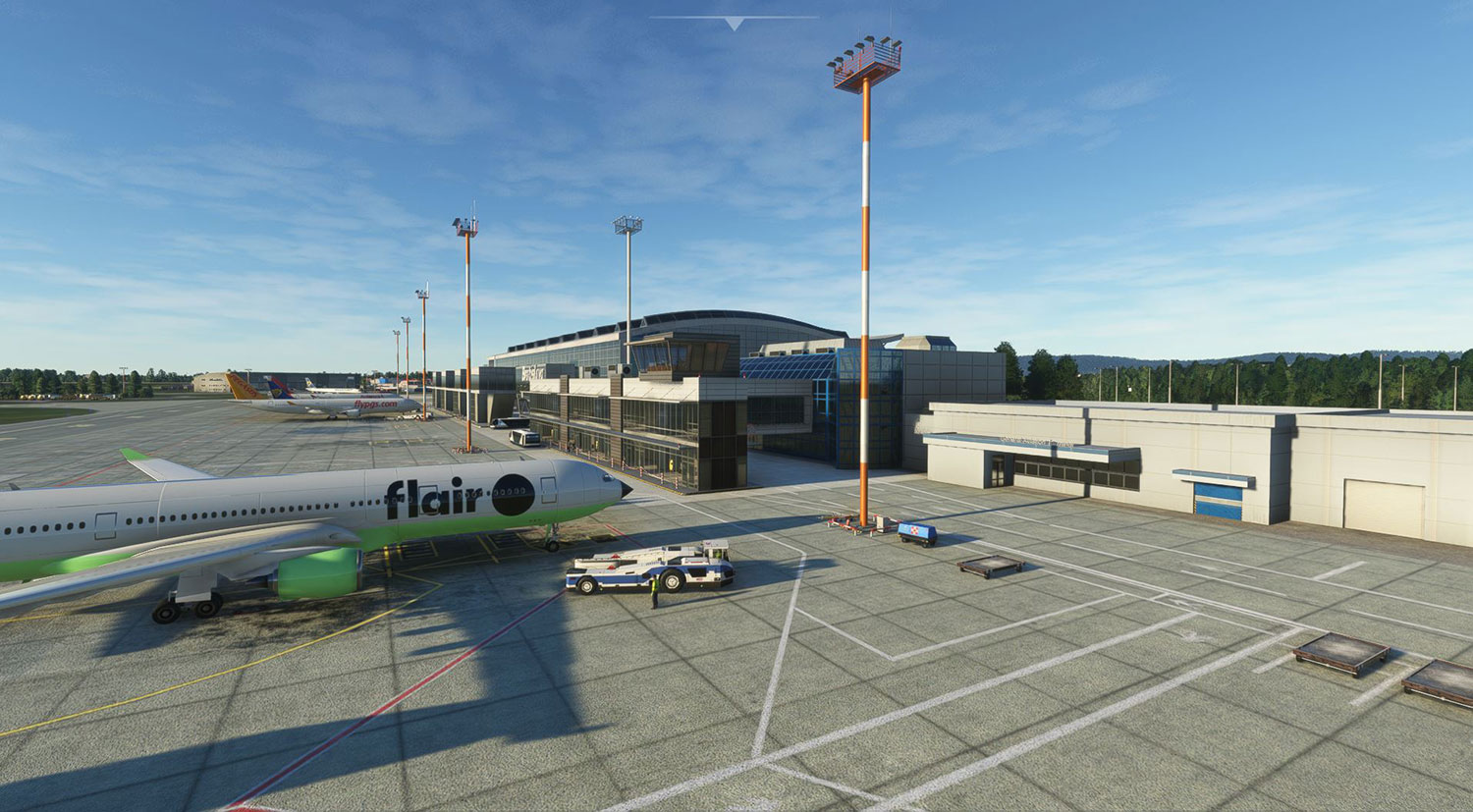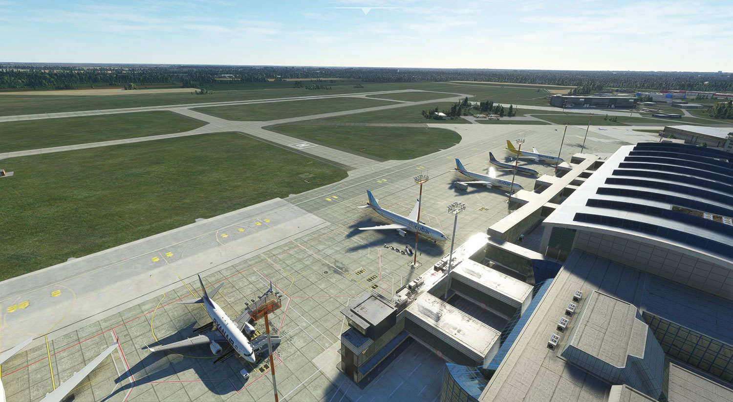 The scenery features aerial imagery covering the airport surroundings, optimized 3D objects, detailed passenger terminal interior, animated passengers inside the airport and in the vicinity, true-to-life logistic parks and delivery centers, and more. The complete feature list follows down below:
