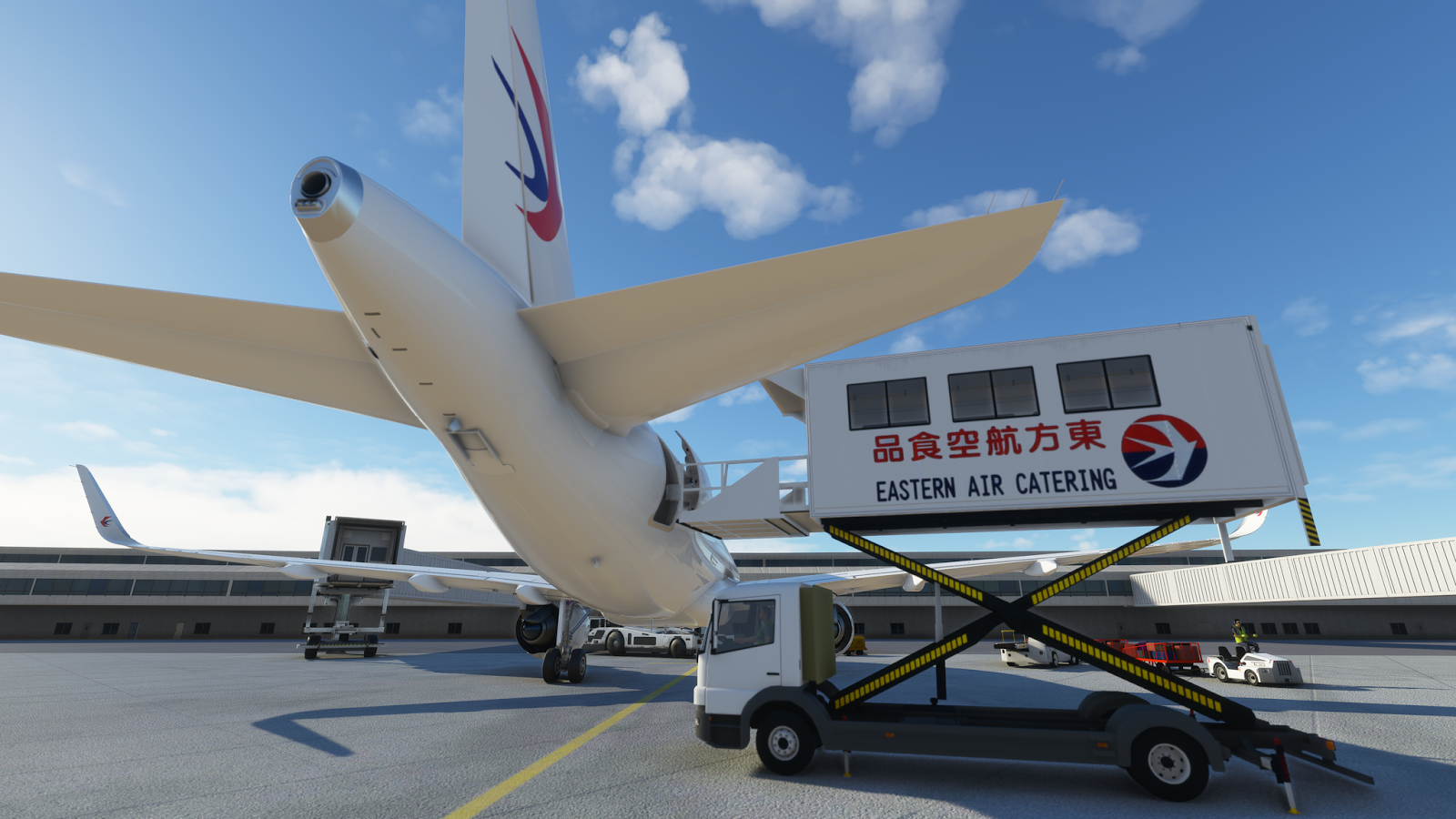 In detail, catering trucks contains logos of the major catering companies operating in the region, with the same applied to the push back trucks, featuring the branding of the operators in the region. As its a visual replacement to solely bring regionalised experience, users can still use the default mechanism to utilise ground service vehicles. All of this improvements without a performance hit, averaging the same FPS as one were to use default service vehicles.