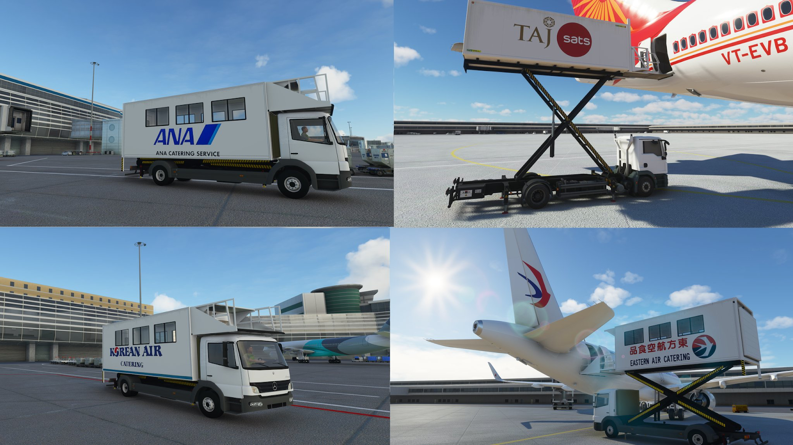 - Realistic catering trucks used in the regions, with the logos of the most important airport catering companies.