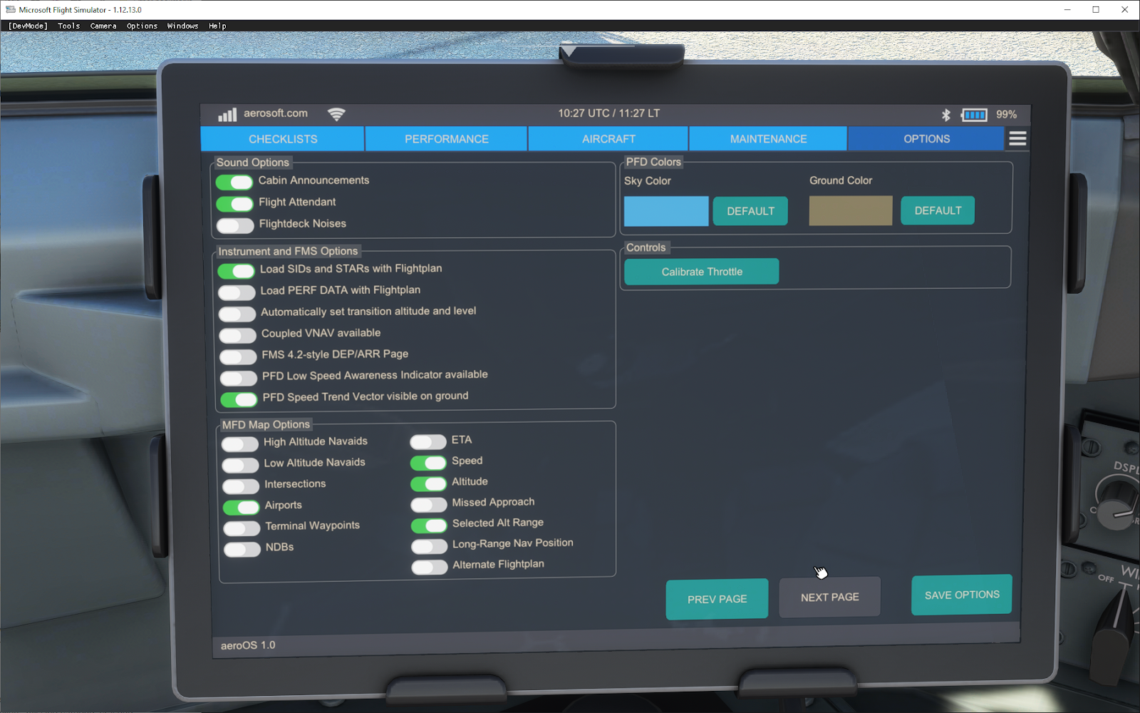 A maintenance section was also showcased, located on this page was the ability to reset brake temperature, reconnect IDG’s, refill crew oxygen, and more. Lastly, an in-depth look at the options tab was also provided. Included in this page was the ability to change temperatures, units, IRS align time, detents, and much more.