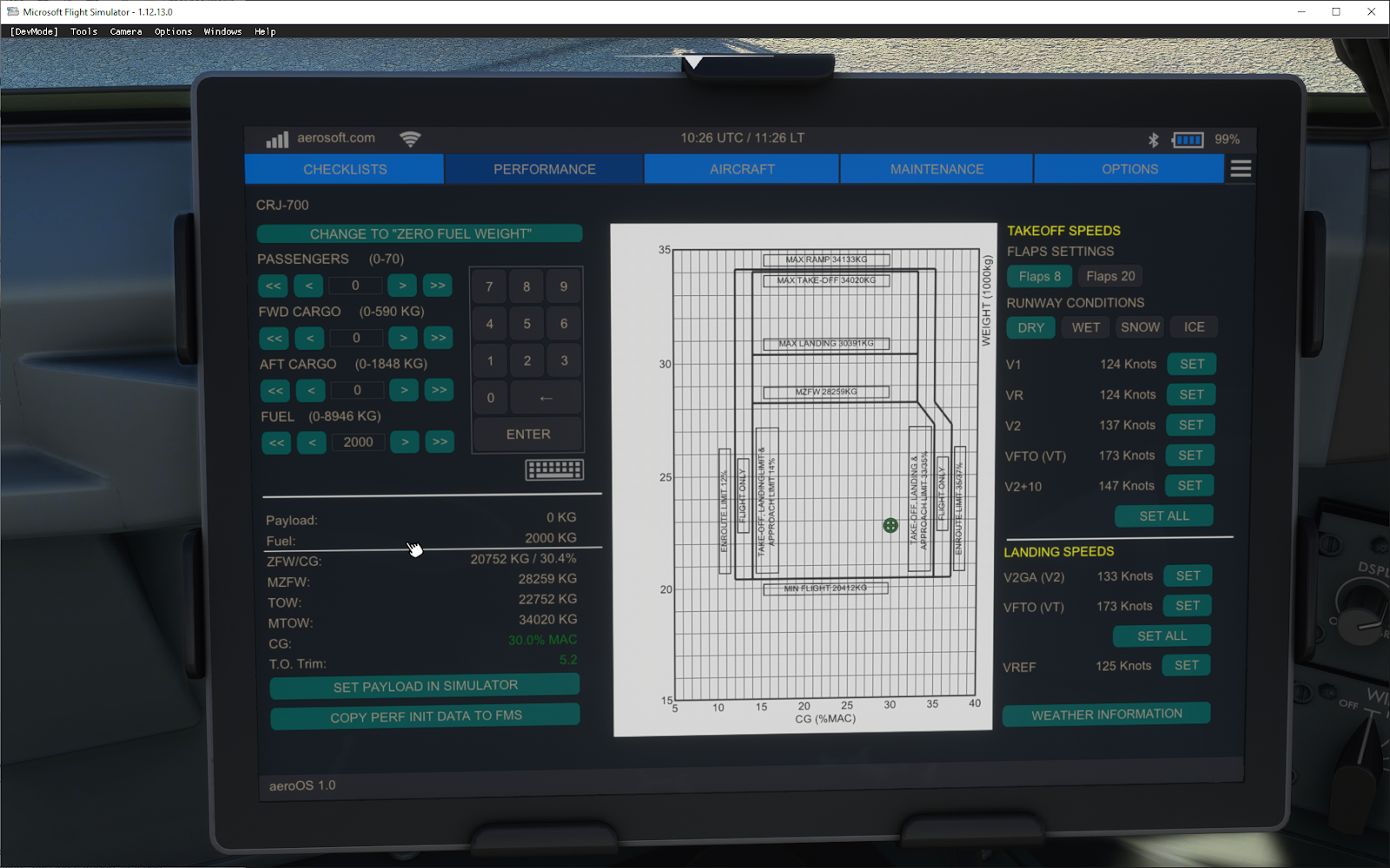 Shown in the previews provided by Mathijs Kok, were multiple pages of the aircrafts EFB. In the first screenshot, the developer provided a preview of the detailed checklist included in the EFB. Moving on, a weight and balance section was also previewed, showing where the aircraft will presumably be able to be loaded from.