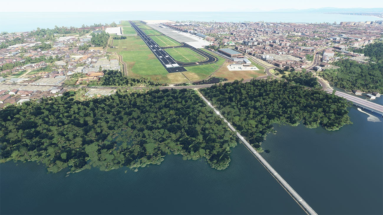 “Thanks to a recent overhaul, it is equipped with entirely new, modern international terminal facilities. The surrounding area of the airport used to be pure forest/jungle but has since been built densely with housing/hotels and numerous small buildings” Aerosoft states.
