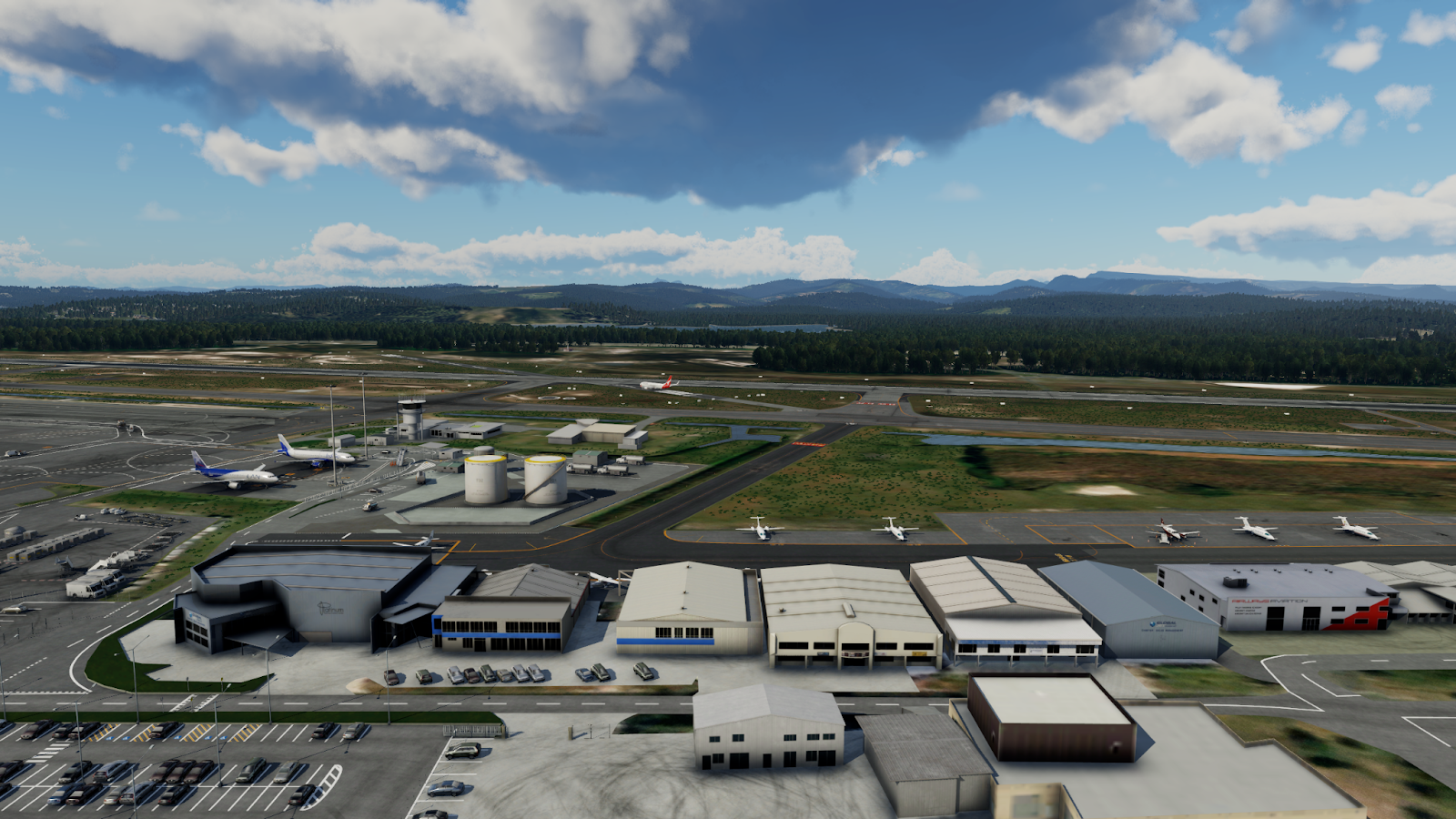 The Axonos YBCG features a highly accurate representation of YBCG with a new apron and taxiway, 3D grass, custom HDR night lighting, PBR and HD textures, color-corrected orthophotos and animated marshalls.