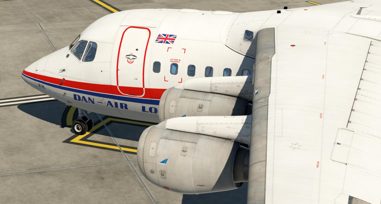 Just Flight has shared more previews of the BAe 146 within X-Plane, many highlighting exterior features and one of the captain’s side of the cockpit.