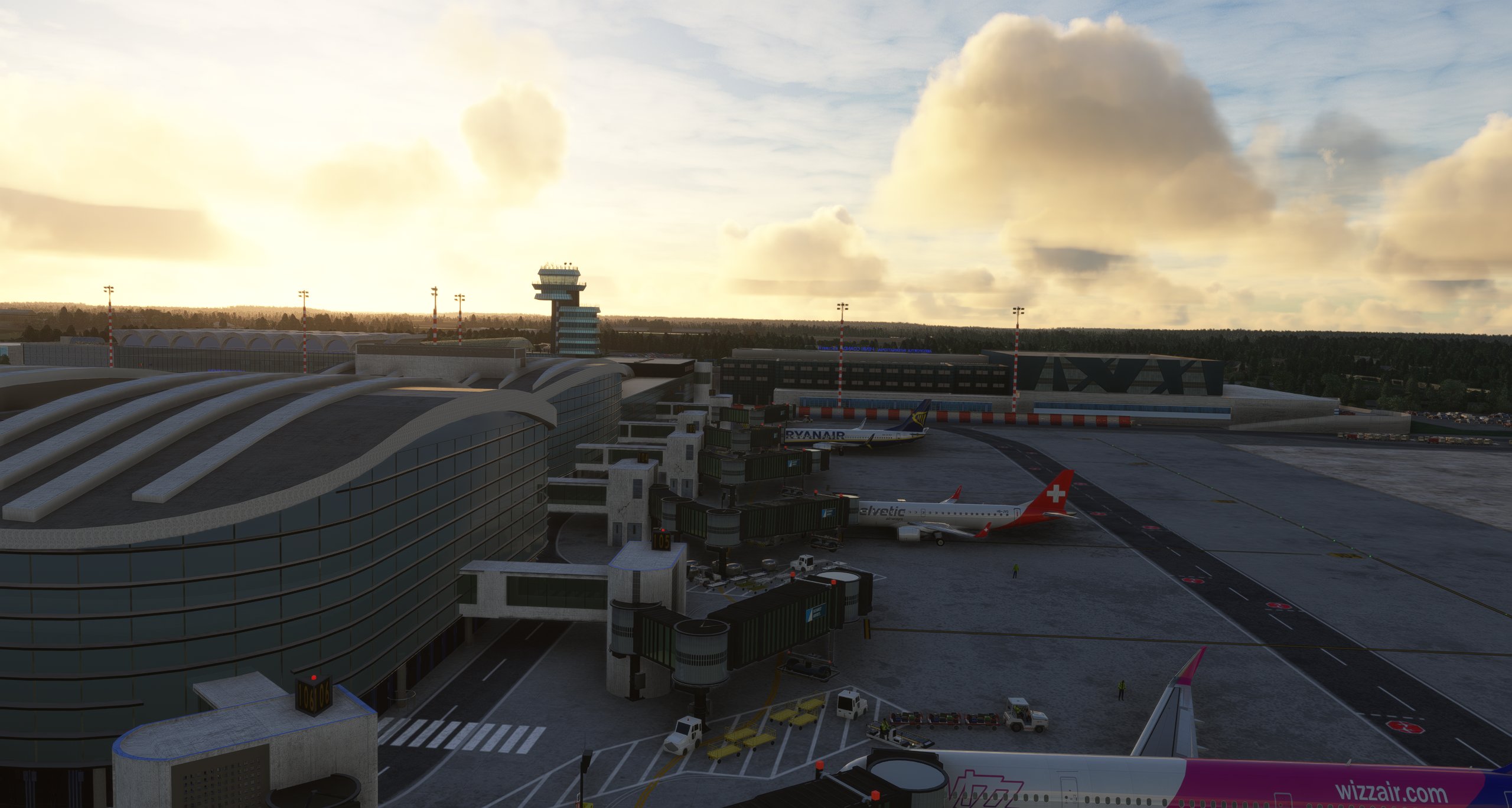 The scenery features an accurate rendition of the airport, with custom ground textures, custom jetways, an up-to-date ground layout, and more.