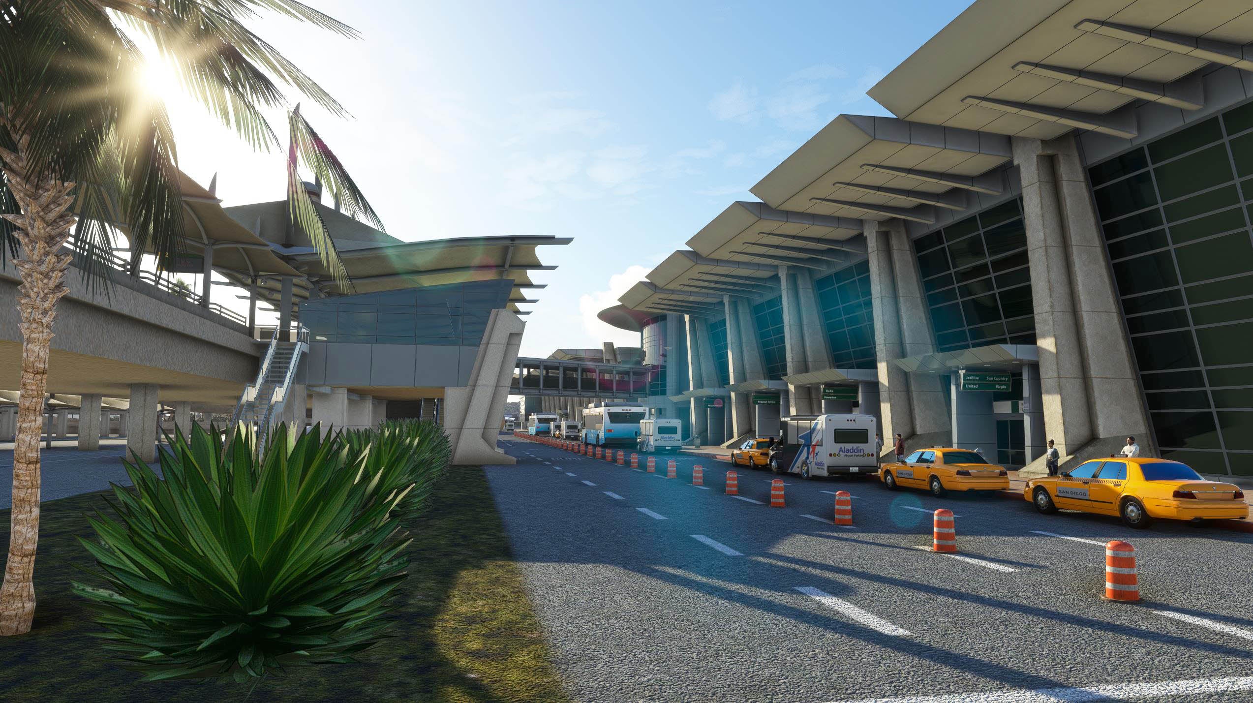 The scenery features an accurate rendition of the airport, with an up-to-date layout, a detailed terminal area, animated jetways, custom ground markings, high-resolution ground textures, surrounding buildings, and more.
