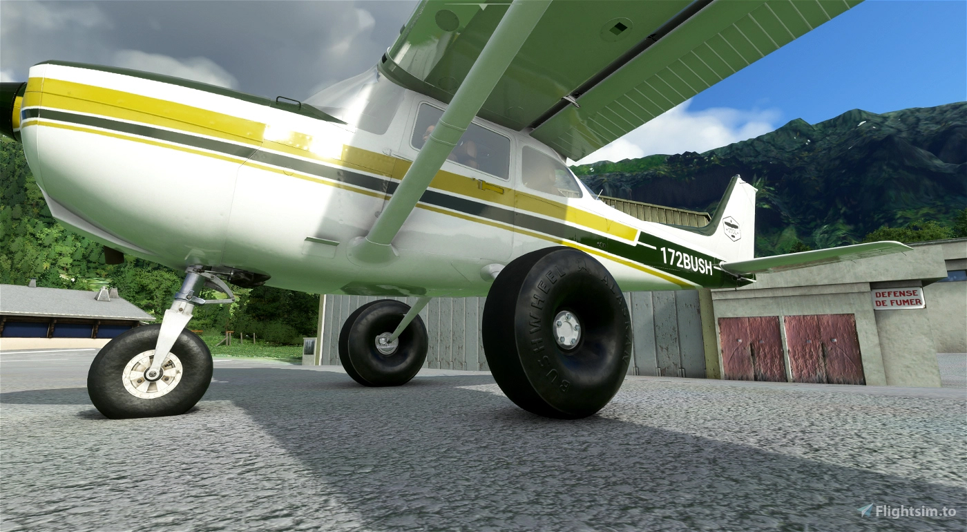Bush KIT :3D model modifications of the original Asobo Skyhawk plane included : large and stable bush wheels ,Sportsman STOL Camber Cuffs on the wings, increased flaps angle. Flight model modifications included : More power from a STC 210HP 4 cylinders engine, 4 position flaps (0°, 10°, 20° and down to 40°),enhanced brakes.