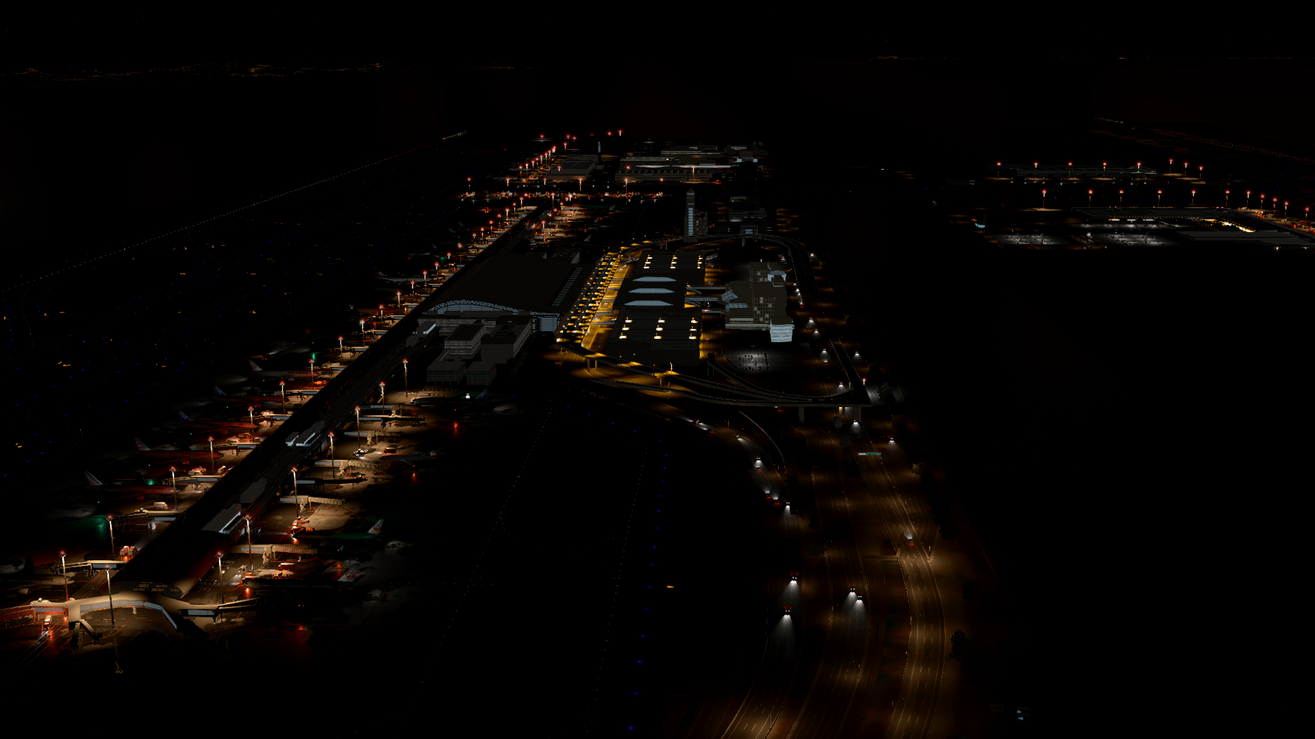 The scenery features an accurate rendition of the airport, with 4K textures, custom ground markings, custom taxiway signs, custom night lighting, performance-friendly optimization, accurate terraforming, and an accurately represented runway 06R/24L at its current status.