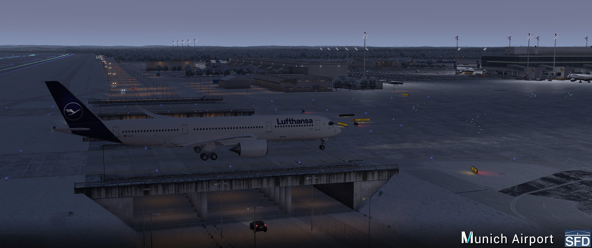 Winter is nearly upon Europe, and ShortFinal Design has shown EDDM in the thick of it! Shown below are winter textures that can be integrated thanks to integration with TerraMaxx, and one of the taxiway bridges: