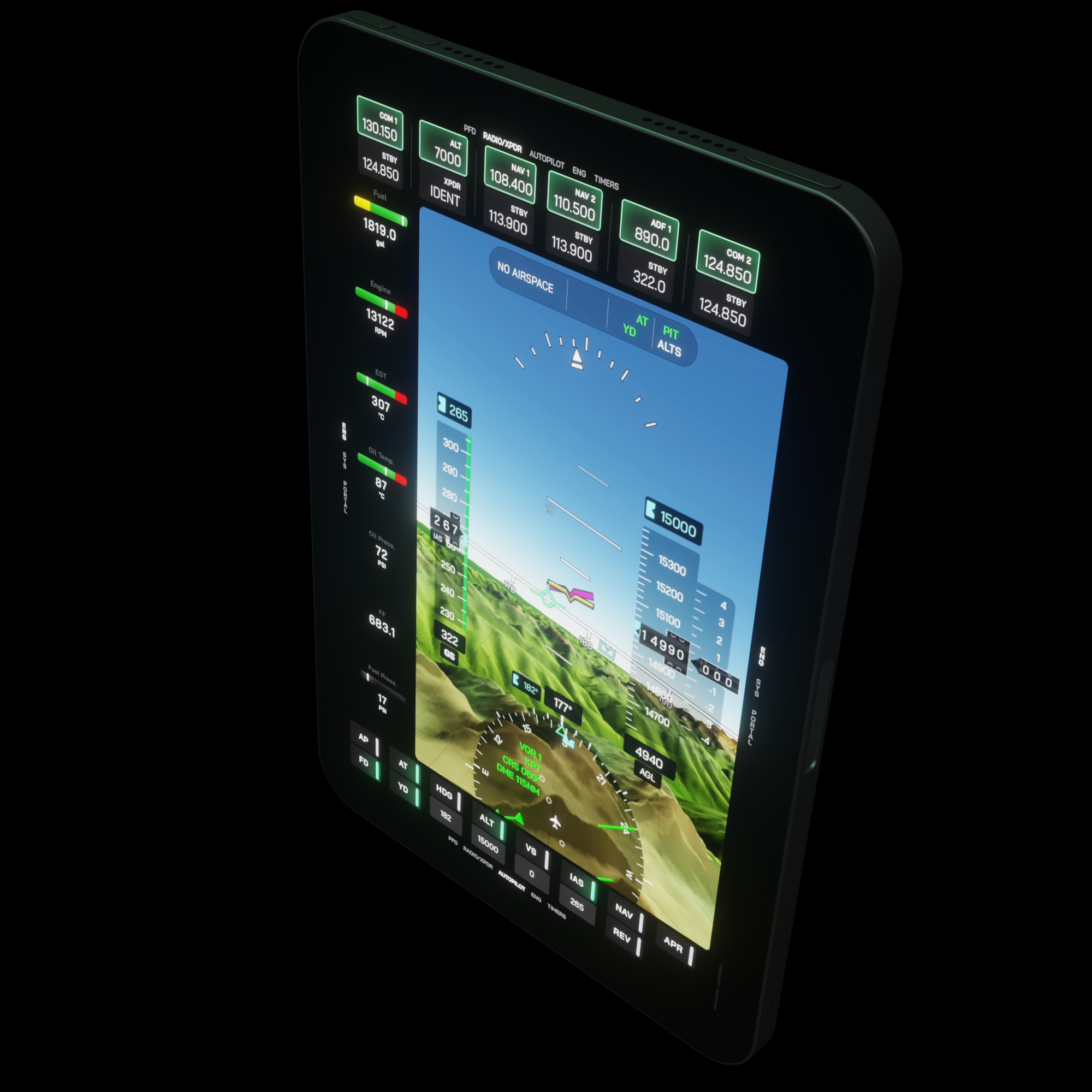 • 3D Terrain in PFD & MFD: freely explore the globe in 3D in your MFD