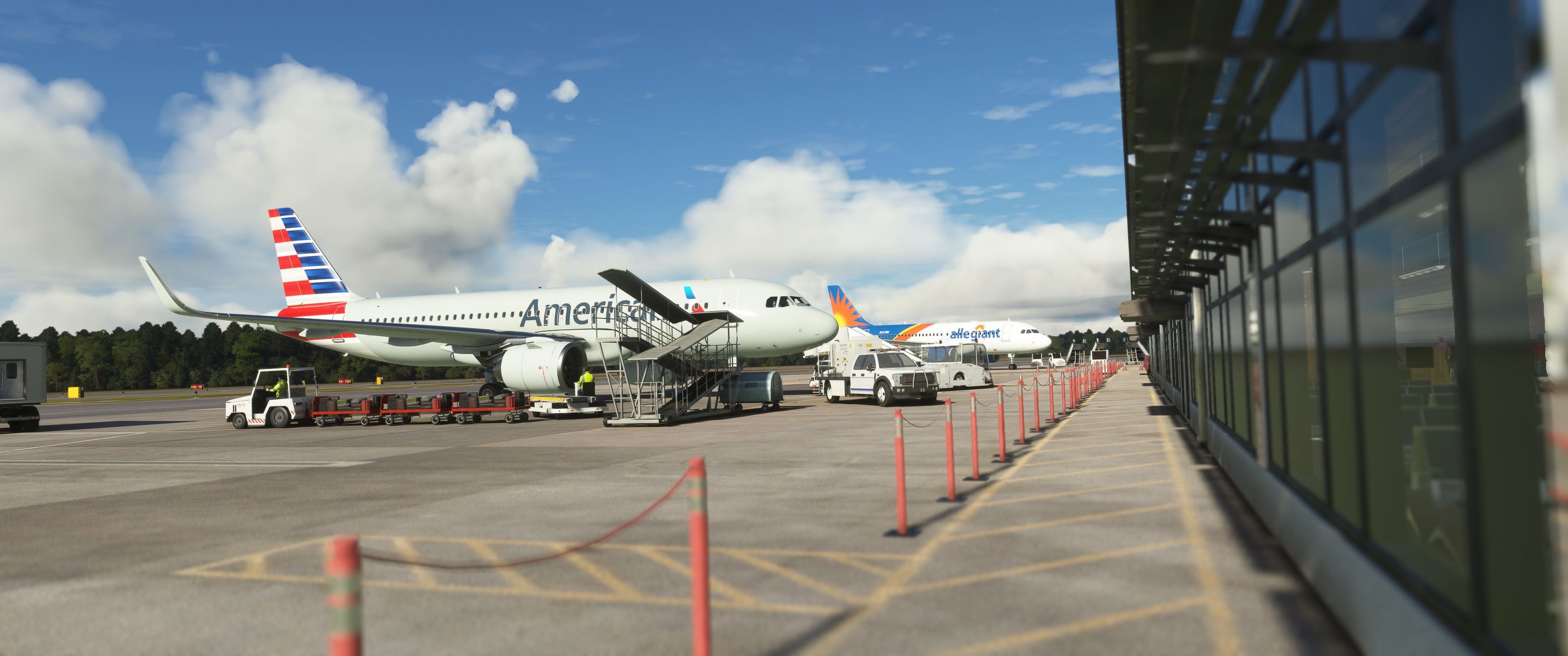 The scenery features an accurate rendition of BLI, with an updated ground layout, custom ground markings, a terminal interior, and more.