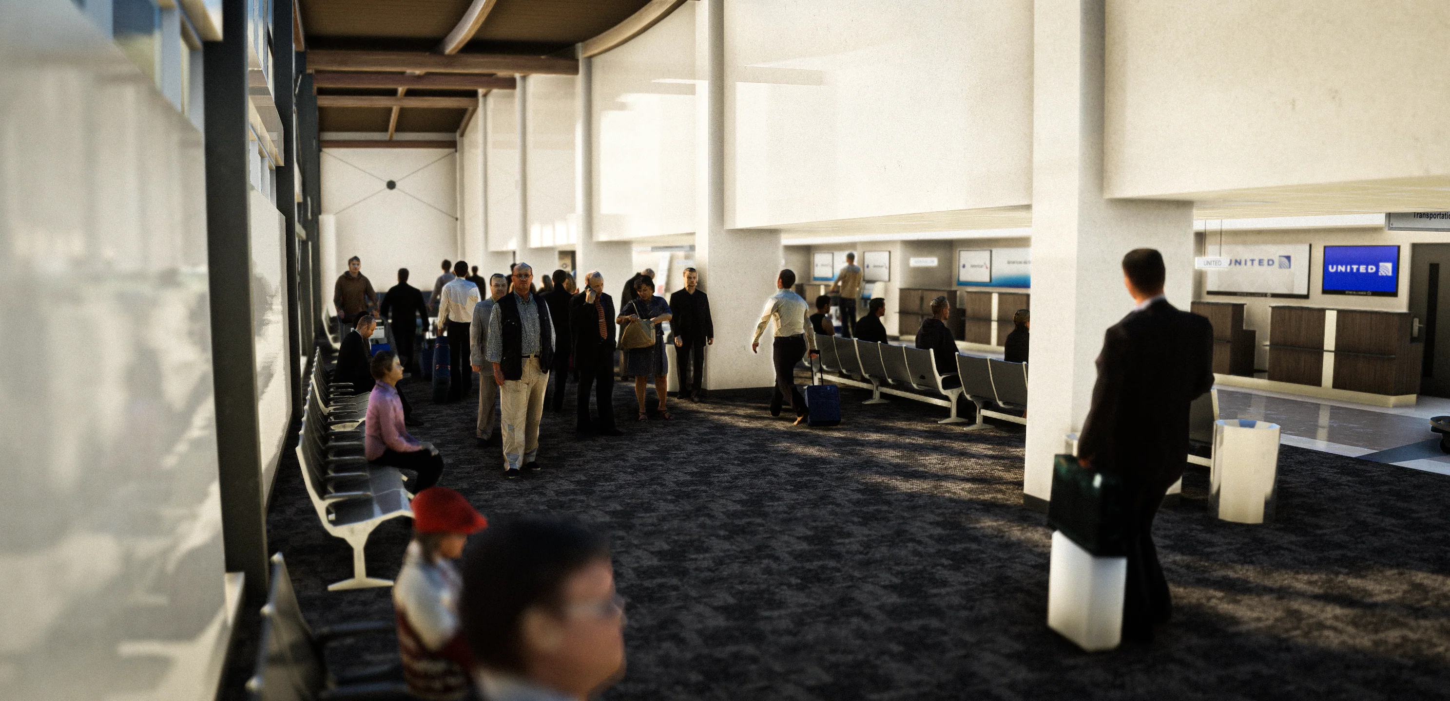 The scenery features an accurate rendition of the airport, with hand-made ground textures, custom night lighting, performance-friendly optimization, and high-detailed models of all buildings.