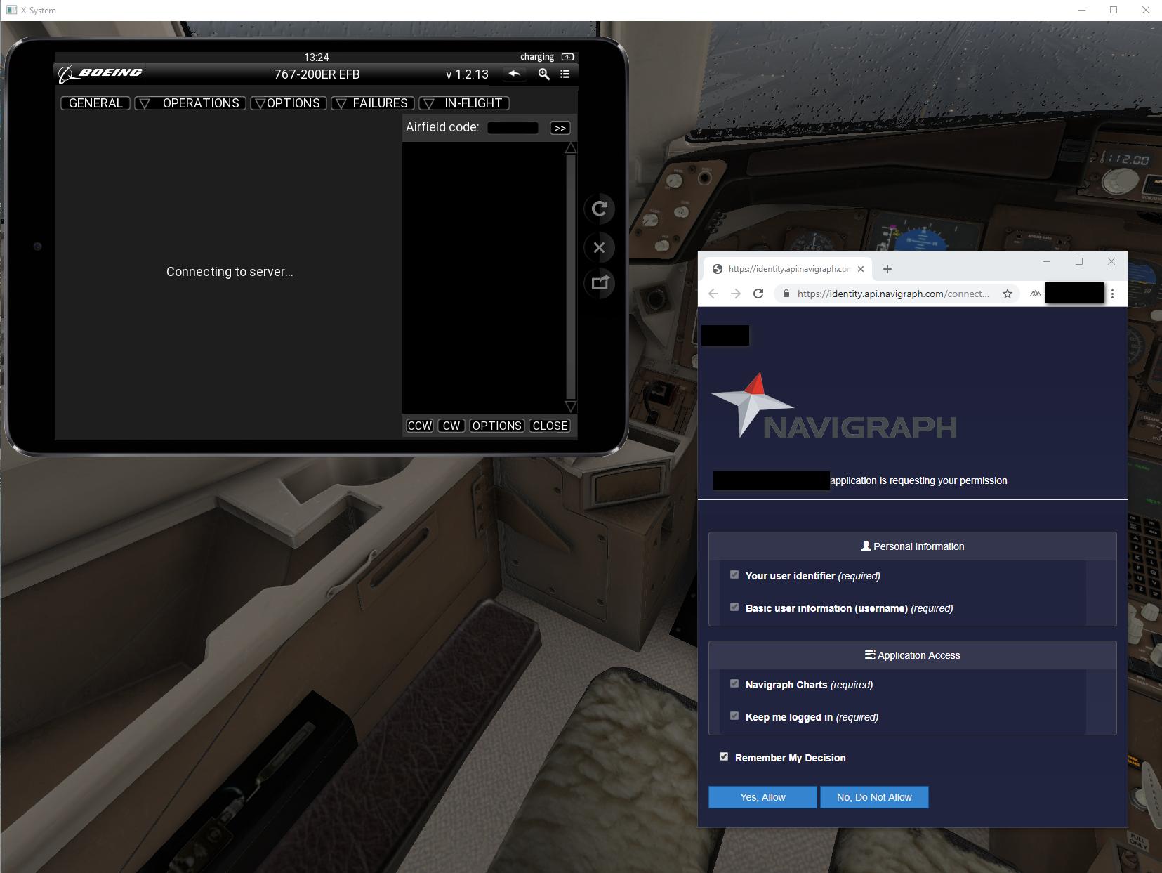 Currently, a user needs to input their Navigraph username and password into the EFB. The external authentication adds the essential layer of security for “true paranoiacs.”
