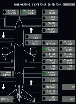 Let’s start off with the Exterior Inspections, the developers provided some plugin screenshots of the interface currently in development for the aircraft – this was said to include visual queues and to be fully interactive – which appears to be one of the first for the current X-Plane simulator.