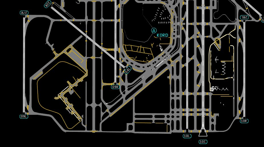 The image shows O’Hare International Airport and its numerous runways and taxiways.