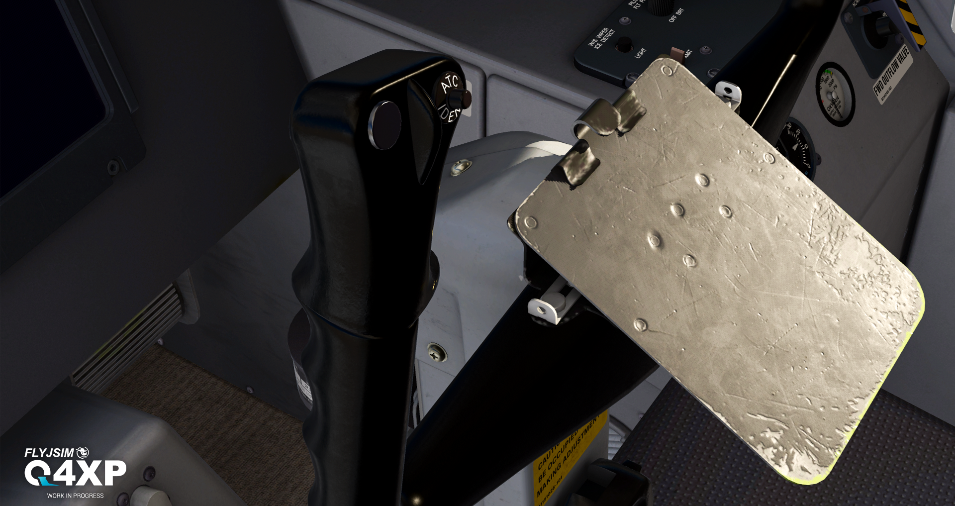 “As you can see, we’ve been very busy on this aircraft,” wrote FlyJSim. “The use of new techniques for texturing not only speeds up our workflow, but allows for a level of dynamic and procedural texturing that was previously inaccessible for us. Some great examples of this include glareshield padding, the correct texture and bump mapping for cockpit seats, scratches on fire extinguishers and checklist clipboards. The aircraft just simply looks gorgeous.”