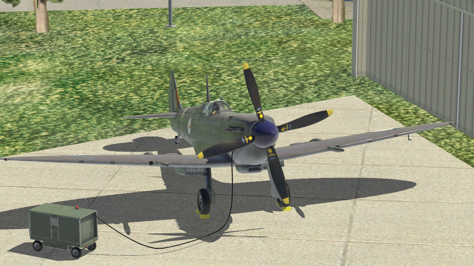 Like the interior, exterior textures on the Spitfire are outstanding with clear labelling and three-dimensional features. All the static elements that you would expect are included and can be enabled/disabled with the VR/GUI box. They are all very realistic looking, which is great. A static object not always included by aircraft developers is a Ground Power Unit, which is much appreciated in this case. It may be my hearing, but the GPU did not appear to have any sounds when powered on (which is performed with the ‘Master Battery’ button on the VR/GUI box). Other exterior items and effects like the exterior fuel tank and the landing lights are controlled with the aforementioned VR/GUI box.