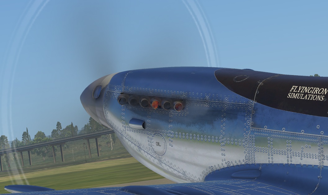 Dusk is a good time to display the wonderful machine gun and landing light effects. I have owned many simulated aircraft over the years, including a few World War II-era fighter aircraft, and the Spitfire’s startup and engine exhaust is the most realistic looking that I have ever seen. The associated sound effects are also very good.