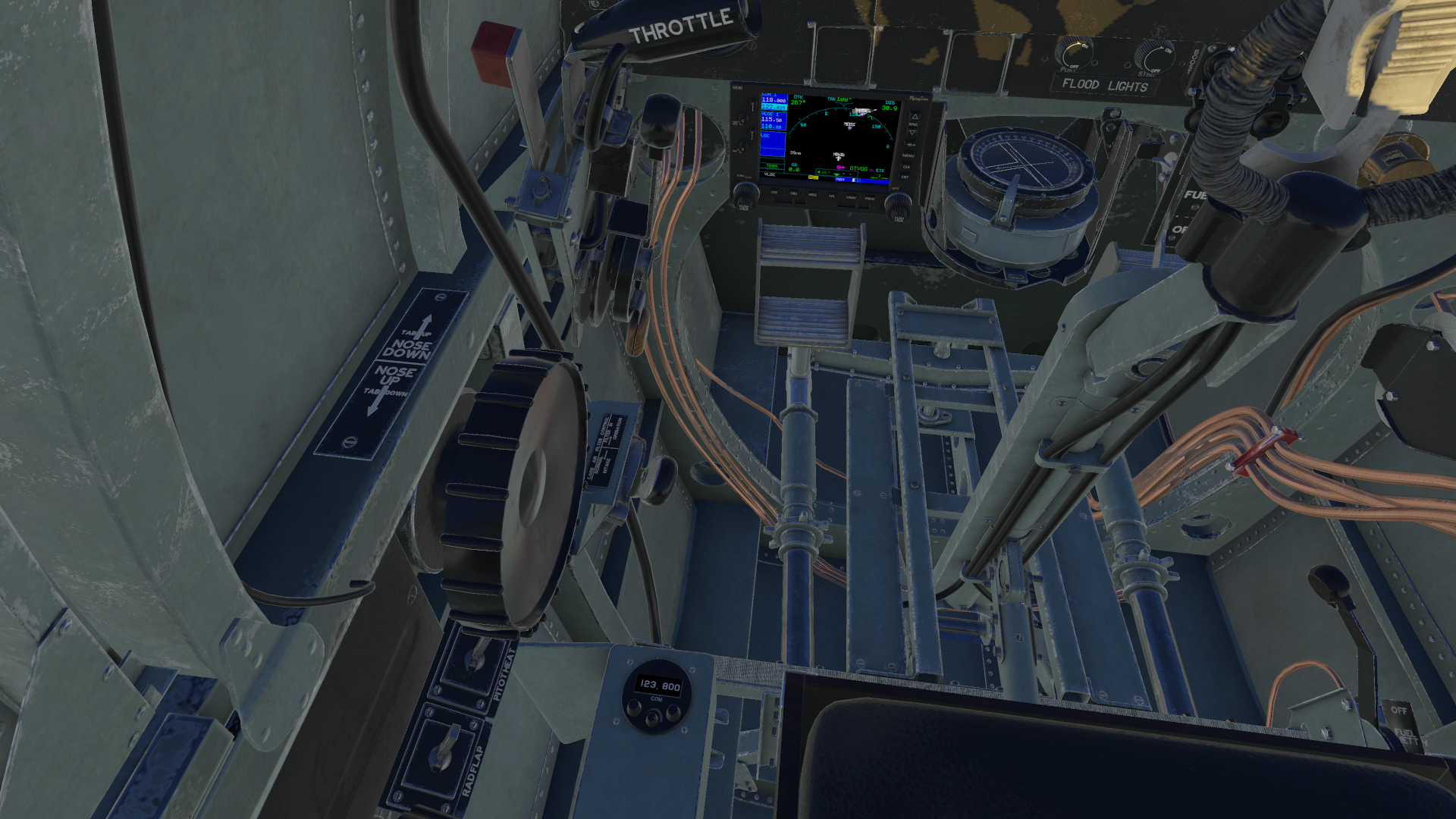 It is important to remember that you must use your keyboard or X-Plane joystick assignment to power on the avionics. I like that the modern option is available so, for example, if I am flying cross-country, I will use the modern radios, however, if I’m just doing manoeuvres, I’ll use the classic instrument panel.
