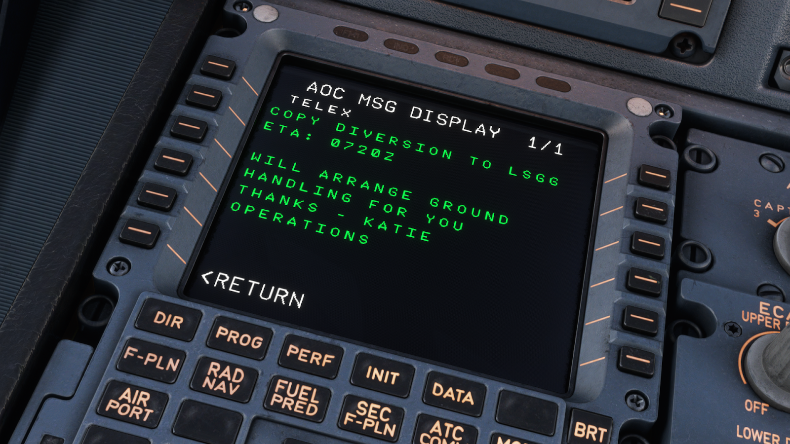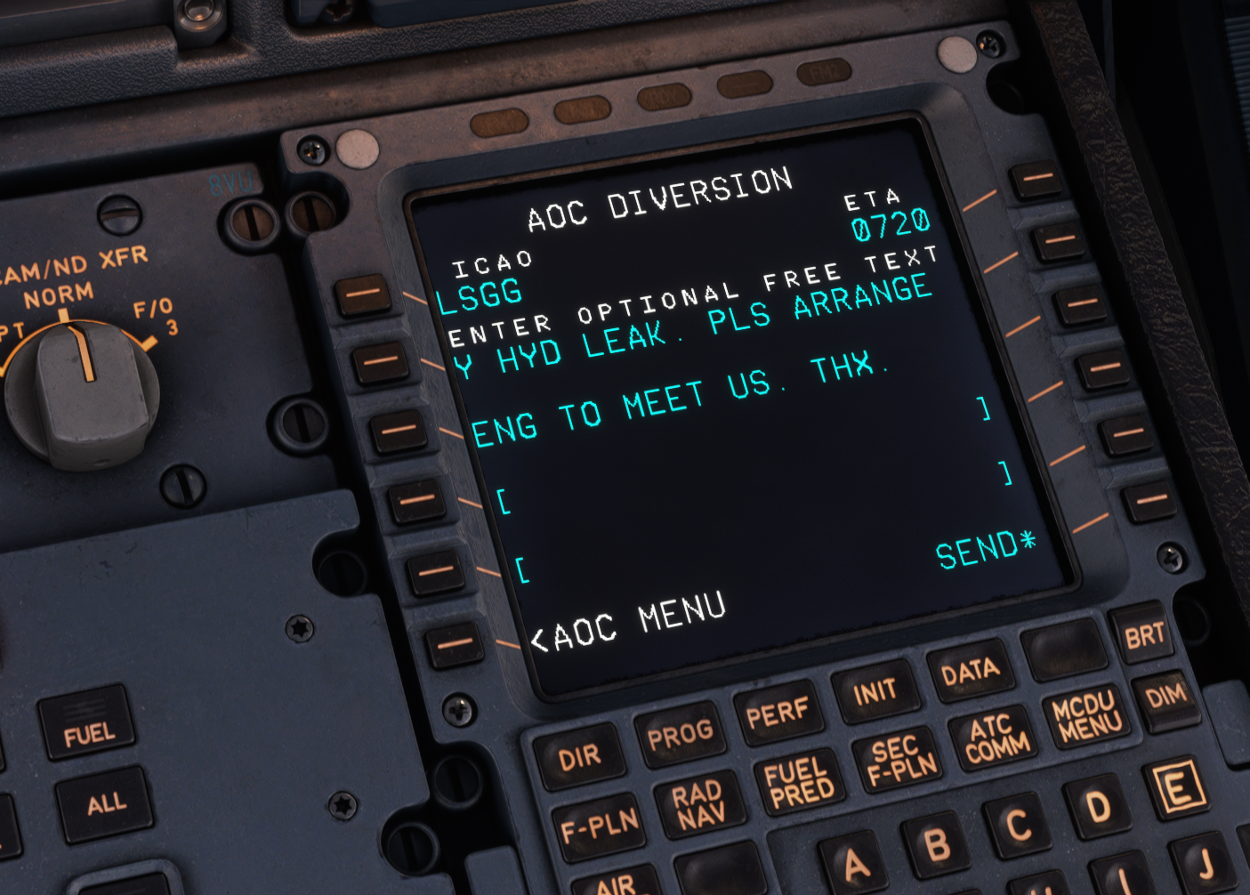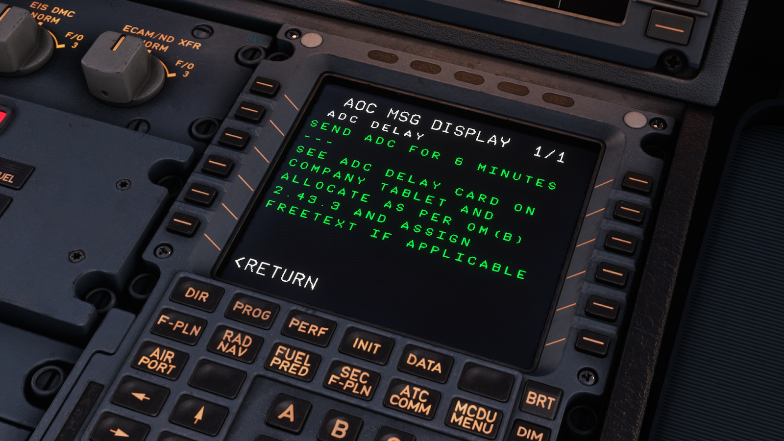 Once you’ve arrived at your destination and plan to start the second leg of your flight, you’re able to also ring maintenance from the MCDU to fix any issues that arose during your flight earlier. The “maintanance team” will come out and simulate a maintenance period of up to 10 minutes (as realistically simulating the time to fix components aren’t very practical of course).