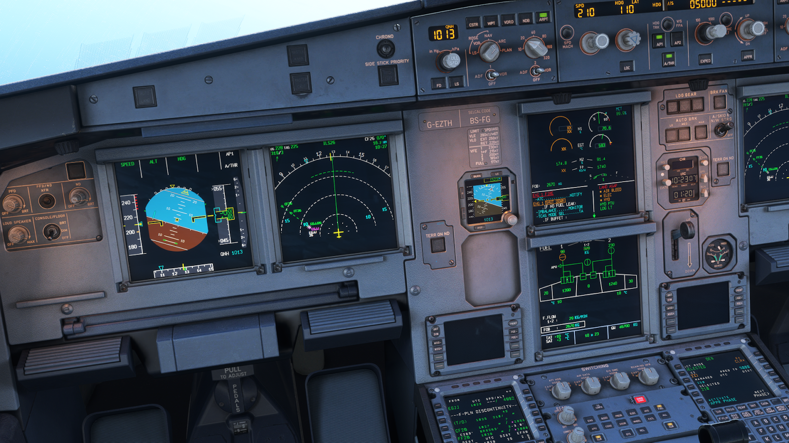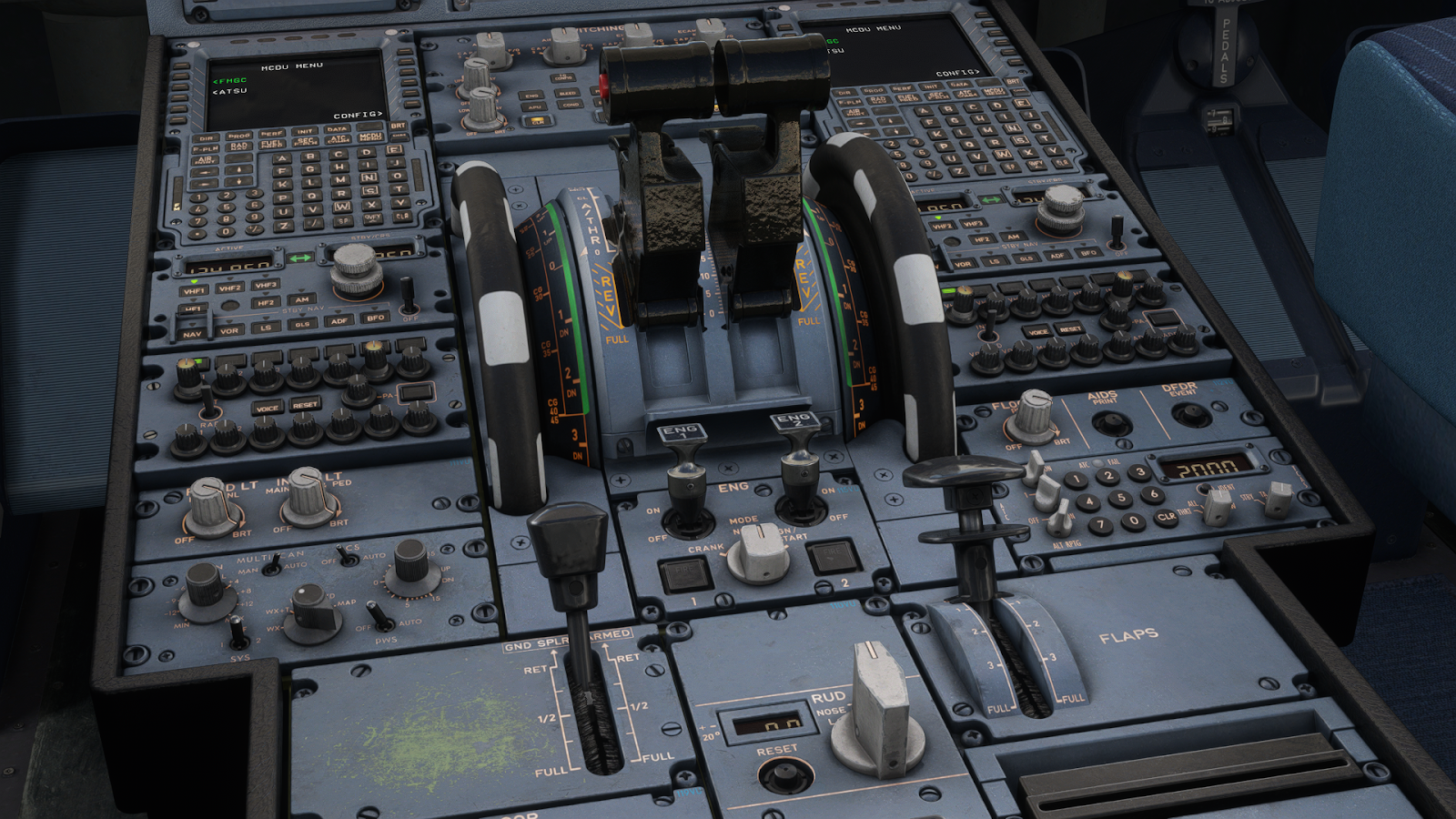 This has been done extremely well, high quality textures matched with amazing PBR that gives the whole aircraft an amazing sun glare during sunset. These are not small textures that have been compressed, the team have spent time making them high quality without jeopardising storage space; allowing panel writing to be read and the rivets to be counted. Modelling externally has been done incredibly well as the aircraft was based on 3D scans of 5 different A320-family airframes, this has meant that the aircraft has had the most advanced modelling seen in any flight simulator add-on.