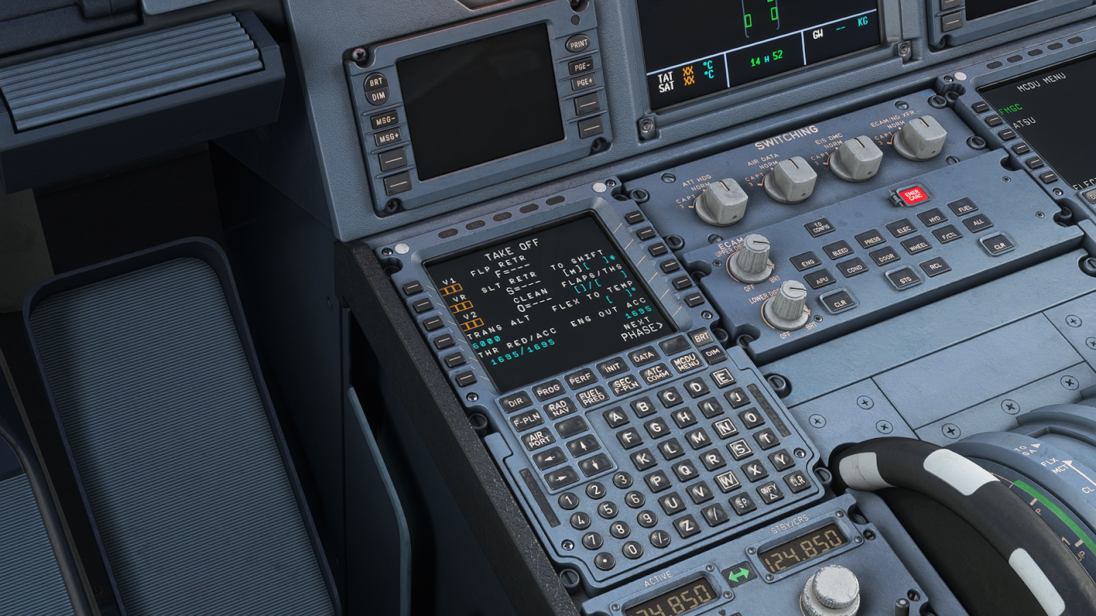 The performance page is where the crew can set all their data for Takeoff, Climb, Cruise, Decent, Approach and Go around. Utilising the wonderful EFB you can generate all your takeoff data and just have to enter the transition altitude and the Thrust Reduction/Acceleration altitudes. These work so that when the altitude is reached the engine power is brought back and thrust levers should be set to CLIMB mode. On arrival, the arrival airport data should be entered to give an accurate approach and landing speed.