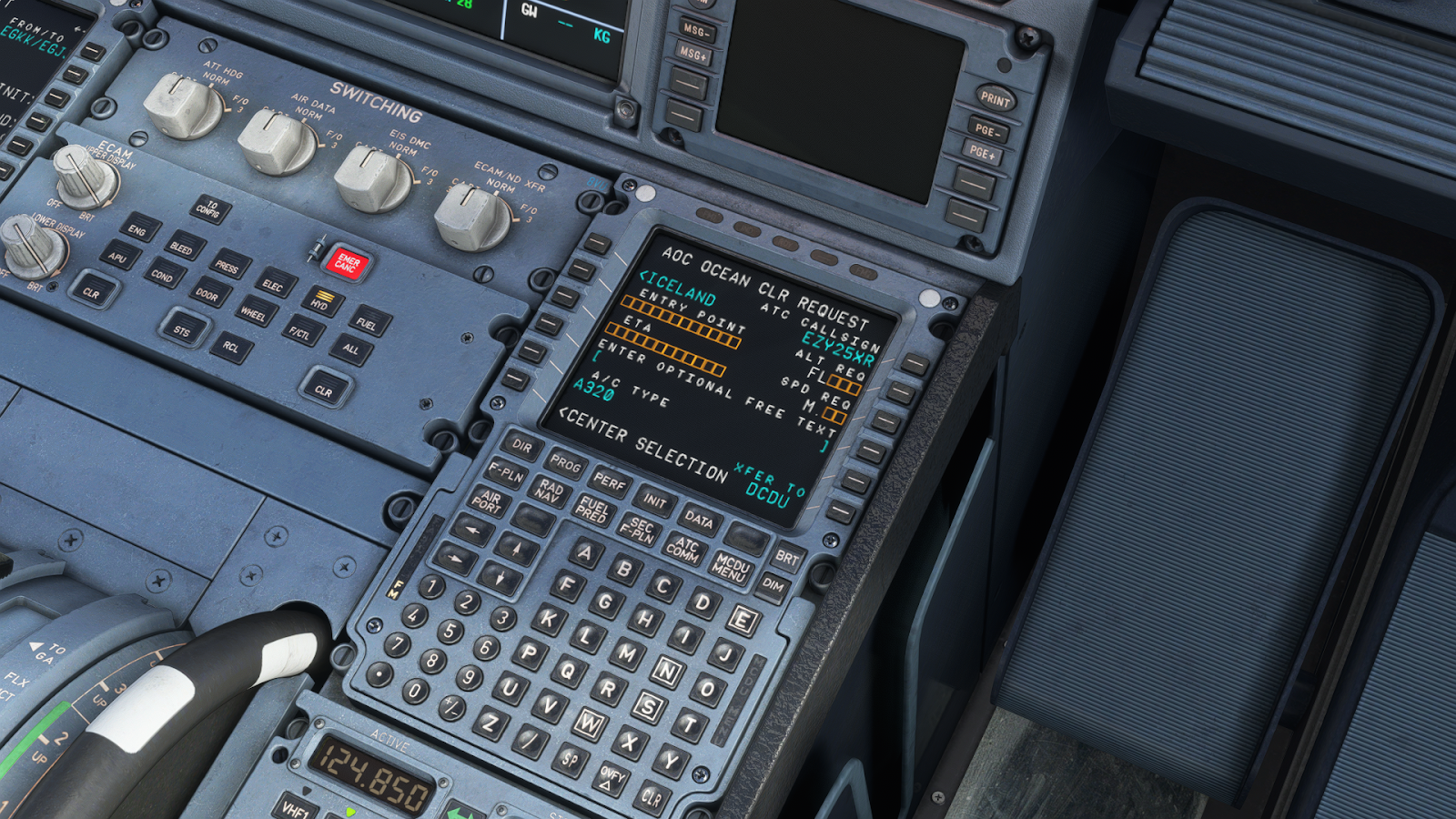 On the AOC ATC Request page lies the ability to request PDC. This is one of the coolest features that not many other devs have simulated. With the ability to request Pre Departure Clearance from the MCDU pilots can speed up departure times as they don’t have to wait for a gap in the ATC chatter. This was really good when I flew out of Gatwick as traffic was heavy and I didn’t want to have to wait for a gap. Furthermore, on the ATC page, you can also request Oceanic Clearance which may seem strange to some but even when you fly to Iceland from Europe there is a section without Radar control. This allows you to avoid having to listen to the crackly HF frequencies.