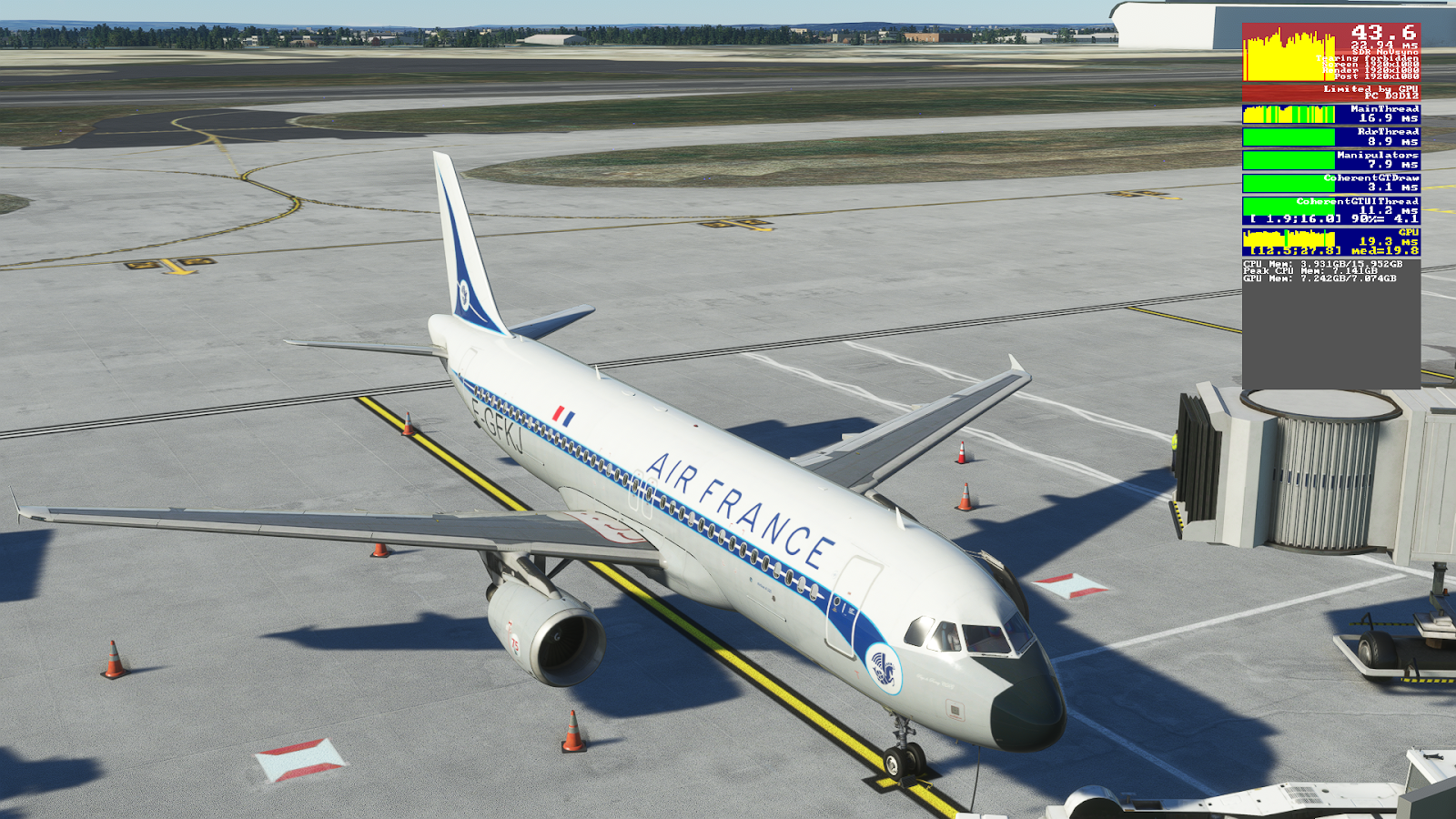 The performance overall was very good for an aircraft of this level of detail. Inside the cockpit, I averaged in the 40s throughout most flights I did; this is what I expected and hoped for with my PC specs (3070ti and Ryzen 5 3600). This said, I did try switching around with running screens off my CPU and GPU and found that CPU was the better option as MSFS naturally uses a lot of GPU memory. Similar FPS outside the aircraft, it was in the mid-40s most of the time, although I found I would stutter when moving the external view. However, the stuttering would stop when stationary in a view.