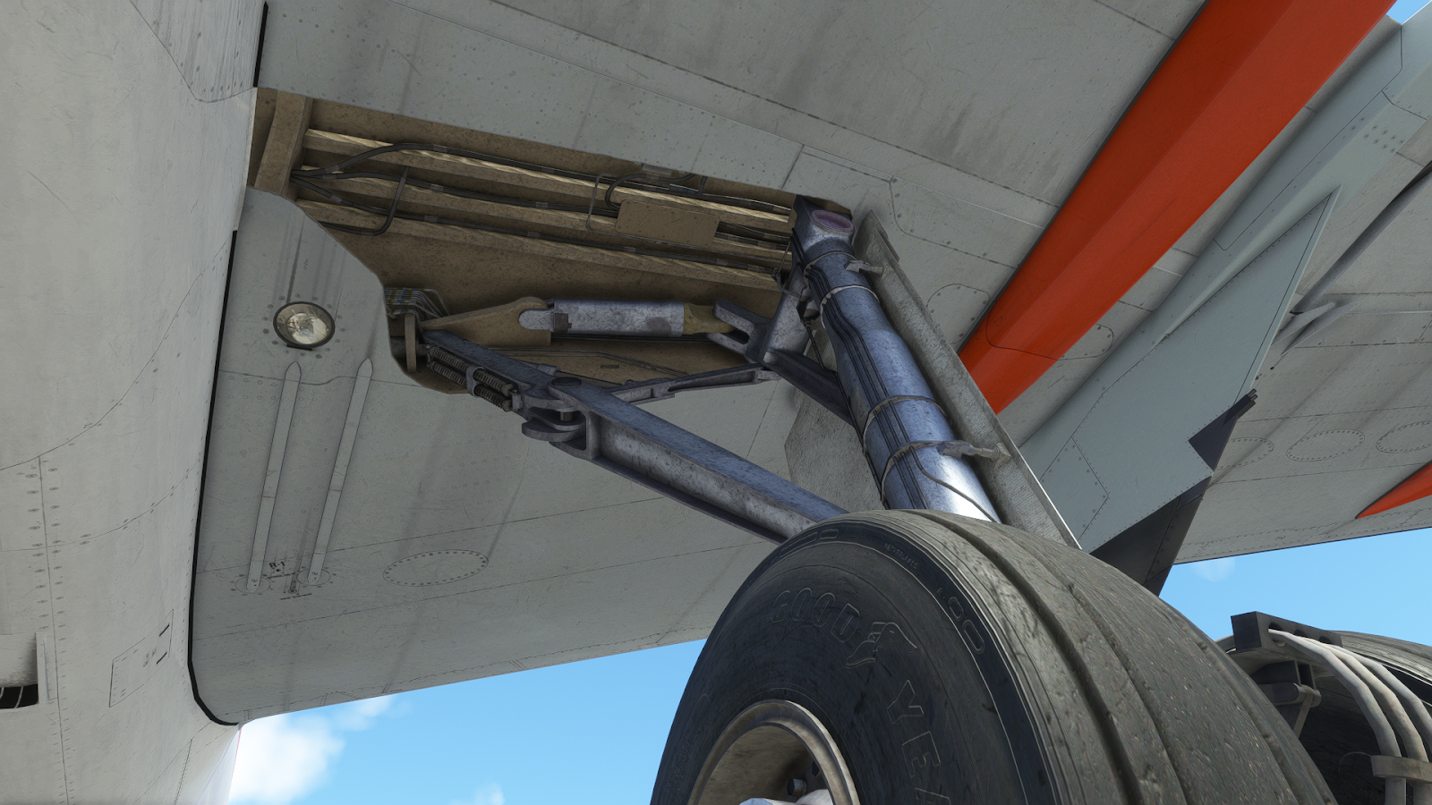 The forward and after landing gear have been done incredibly well, each cable and bolt has been modelling separately rather than using one generic texture. Each tire has been given a different ware pattern as well allowing for a unique look and feel. Furthermore, even the break fans on the after wheels have been 3D modelled and they even spin when the brake fans are turned on!