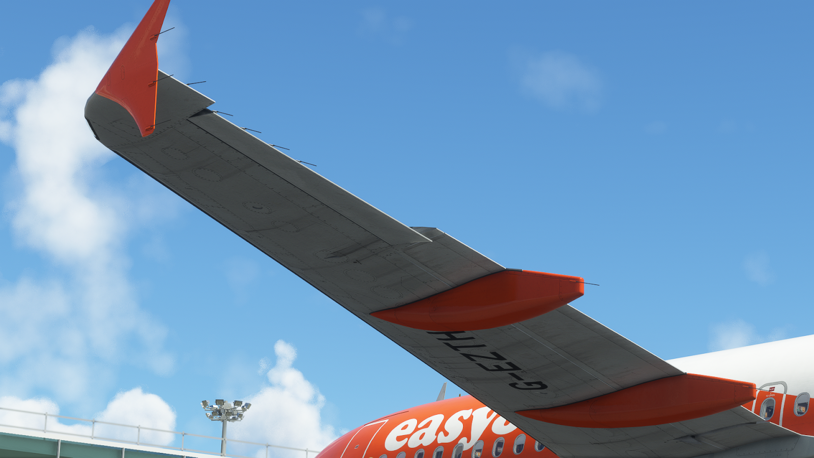 Moving on the wings, the texturing quality has been carried across as they offer some real eye candy. The dirt above and below gives them that used look that as stated earlier a lot of developers forget about. The PBR on them is one of the best seen in any flight simulator addon, the reflections off give an amazing shine that increases screenshot quality massively. Another factor about the wings in the Wing Flex, now the Airbus has little IRL but don’t worry the Fenix has it modelled incredibly well.