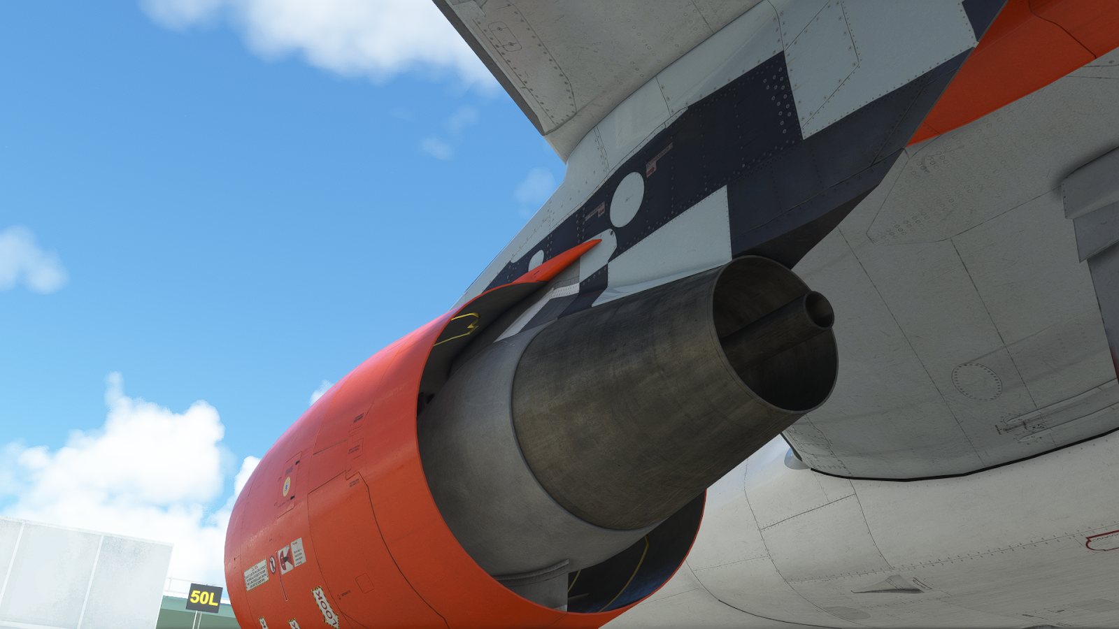 Finally, the engines, the iconic CFM56-5A made for the Airbus family have also kept up with the high quality, the textures on the exhaust end of the aircraft are amazing, and the heat and wear effects have been extremely well. Even the rivets connecting the engines to the wings have dirt streaks running back as the aircraft has moved through many flights.