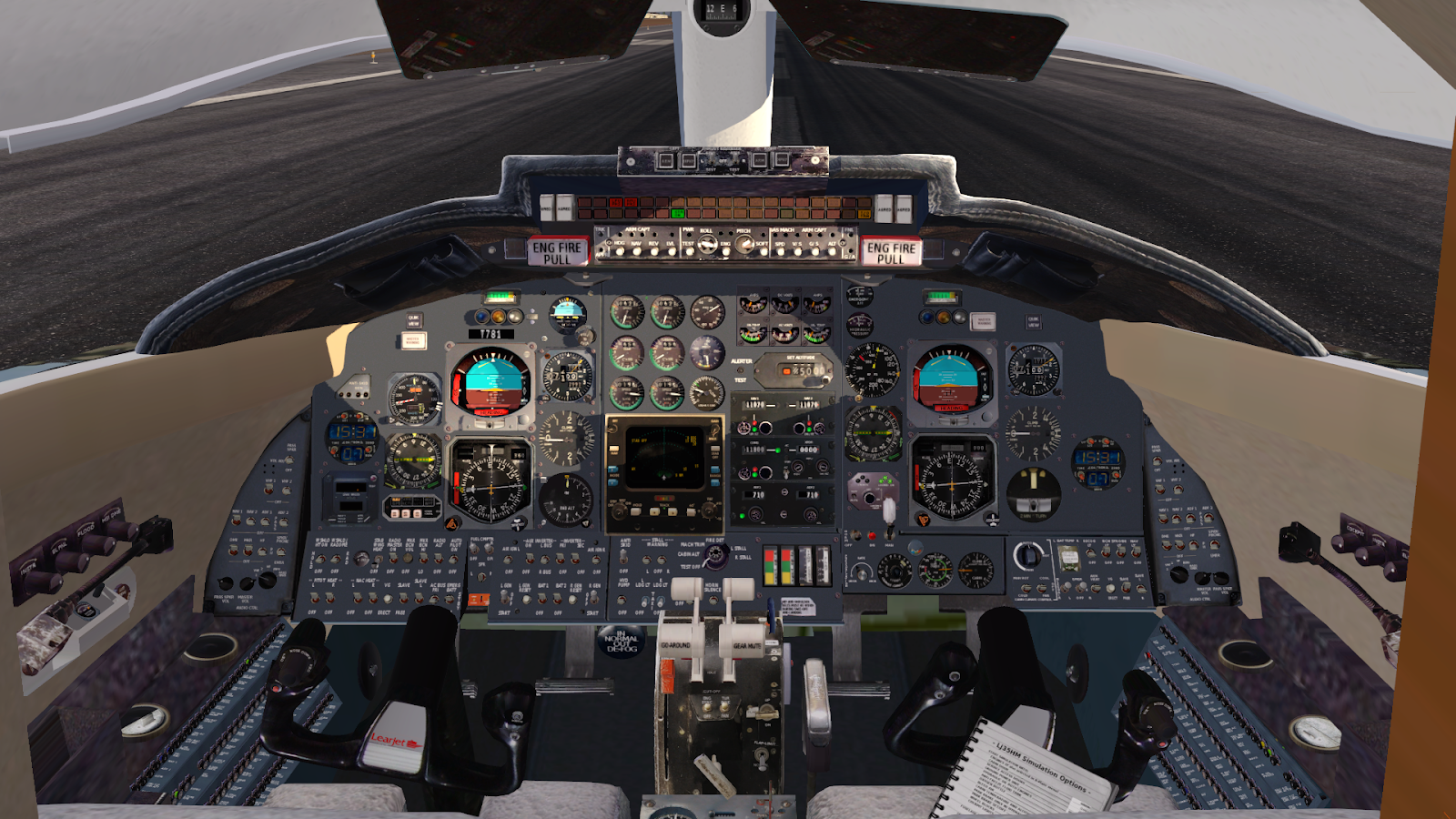 Now taking a look at the physical aspects of the plane, the Lear 35 contains a 3D cockpit, cabin and exterior model. I’ll save the obvious deficits for the next section, but the cockpit appears to be accurately modeled with all systems and miscellaneous switches in their correct position. The exterior model features a barebones yet satisfactory model of the Lear’s real-life counterpart. Whilst not particularly stunning, the 3D cabin is a nice little touch, especially since it presents itself with a neat little cabin control panel. Overall, the modeling of the aircraft meets “acceptable” standards.