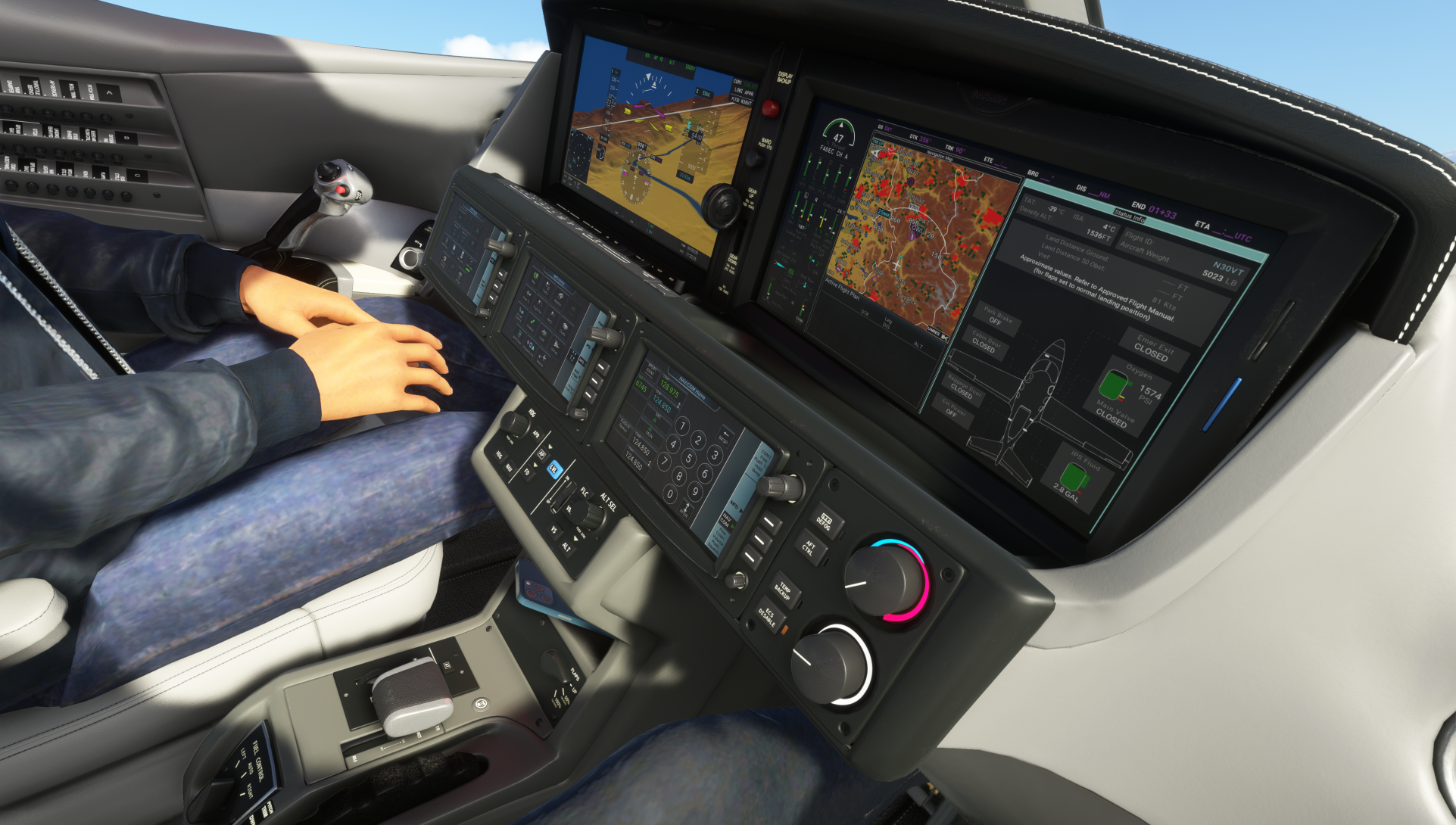The SF50 features a custom G3000 (based on the Working Title G3000), three different seating configurations following real-life specifications (executive, family, and complete), custom integrated checklists, dynamic aircraft registration, high-quality texturing with performance in mind, visual icing effects, a comprehensive package of custom sounds, and more. The full feature list follows down below: