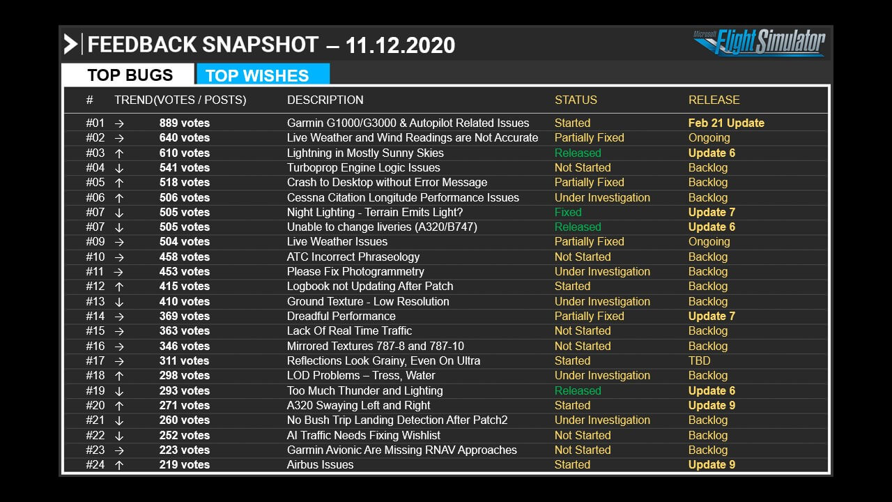 - We are investigating several SimConnect bugs while also trying to expand its capabilities to suit third party developers’ needs.