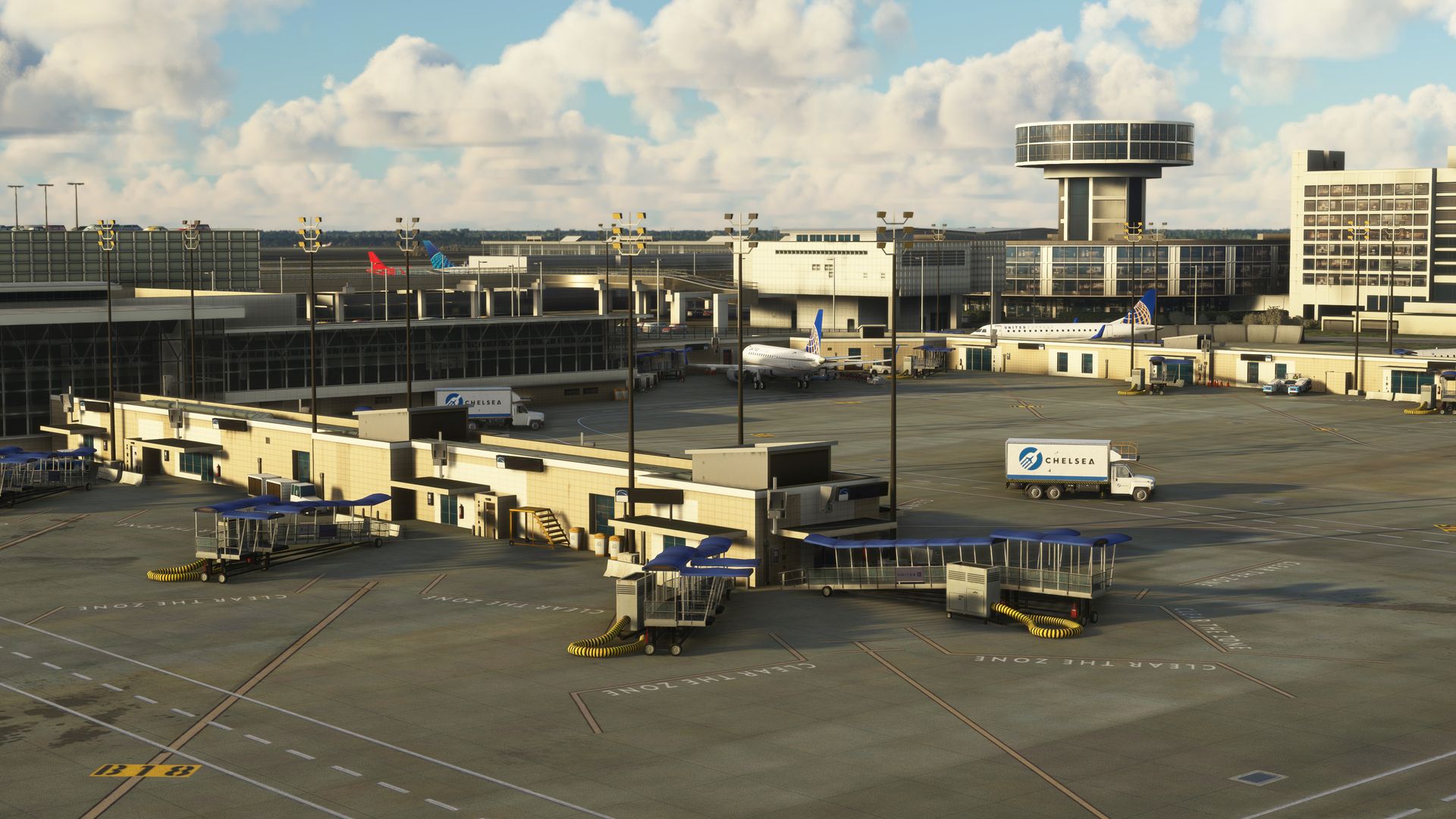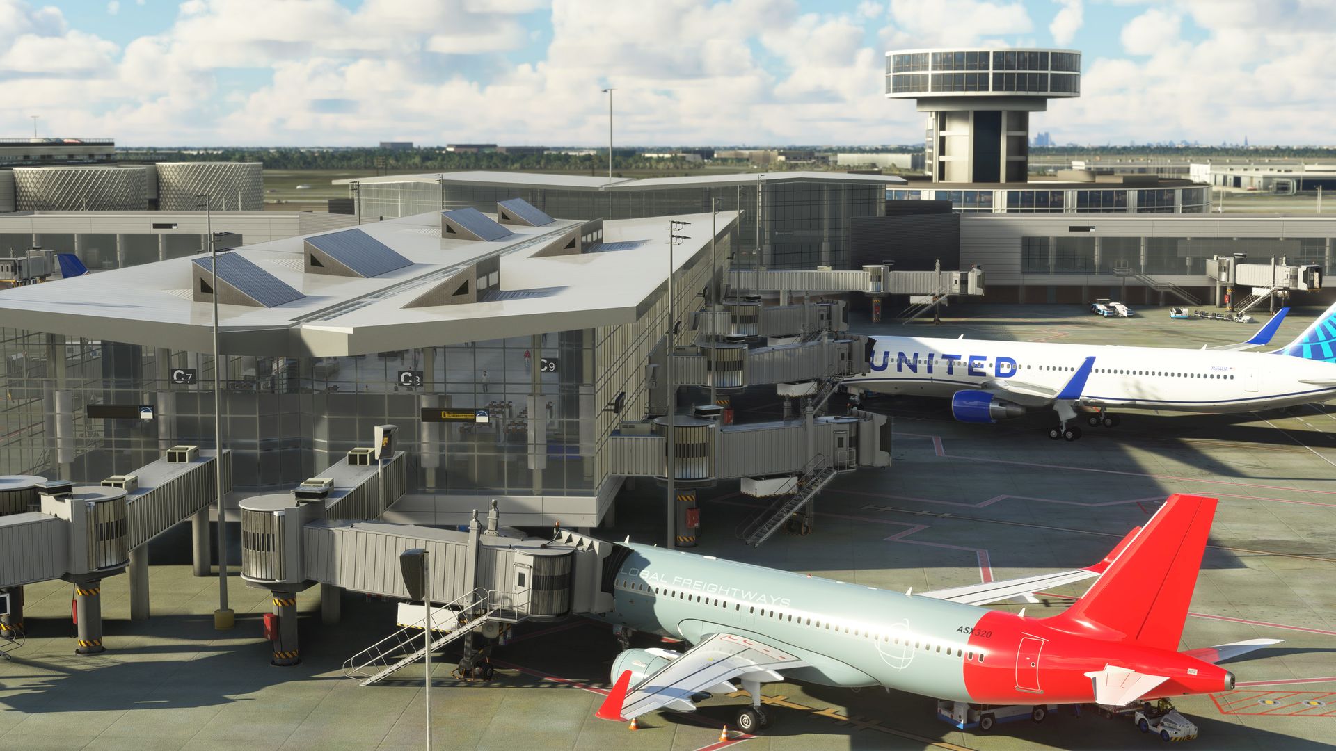The scenery features an accurate rendition of the airport, with a realistic airport definition file, a customized GSX Pro integration, full dynamic lights, PBR texturing, Parallax shaders, the new terminal c modeled from scratch with full interiors, and more.