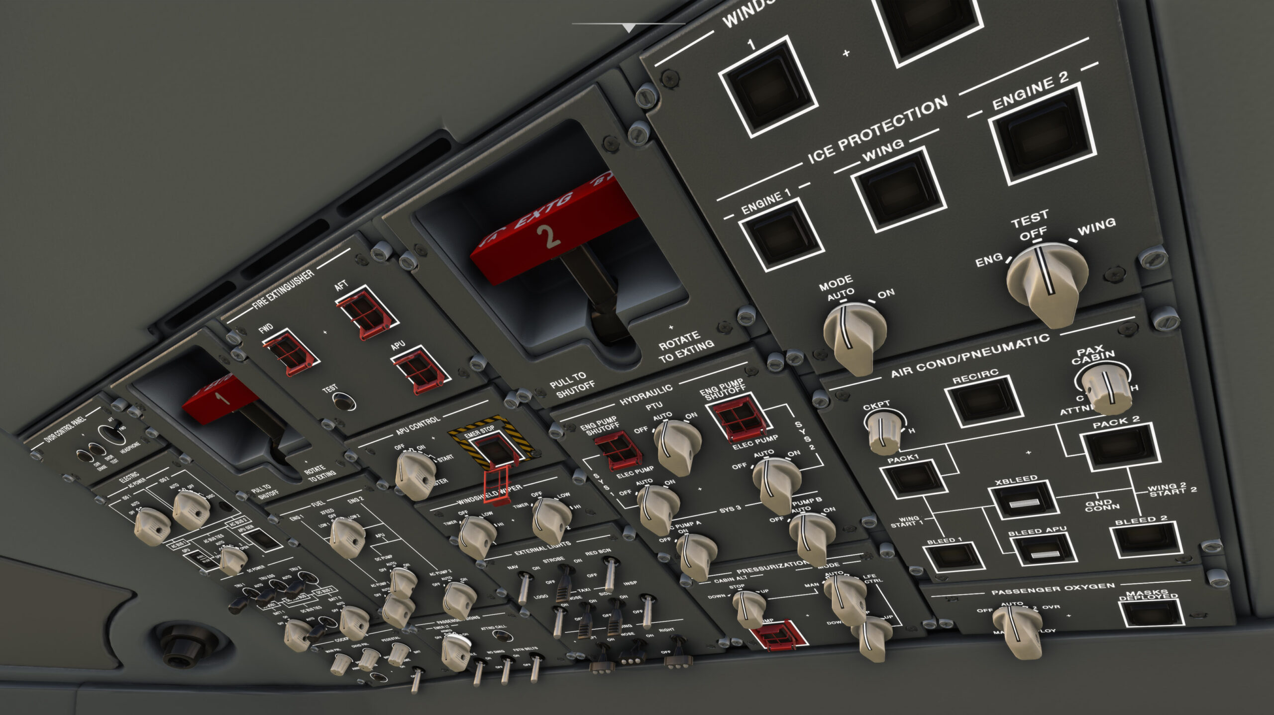 – Custom system pages (STATUS, ANTI ICE, ECS, ELEC, FLTCTRL, FUEL, HYDR, ENGINE, CONFIG)