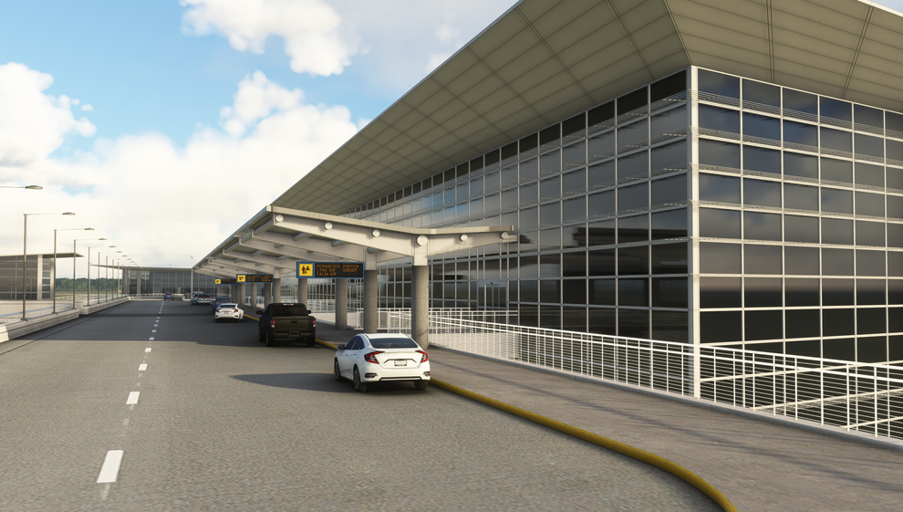 The scenery features an accurate rendition of the airport, with high-quality texturing, high-detail models, custom ground textures, a fully modeled terminal interior, custom jetways, and more.